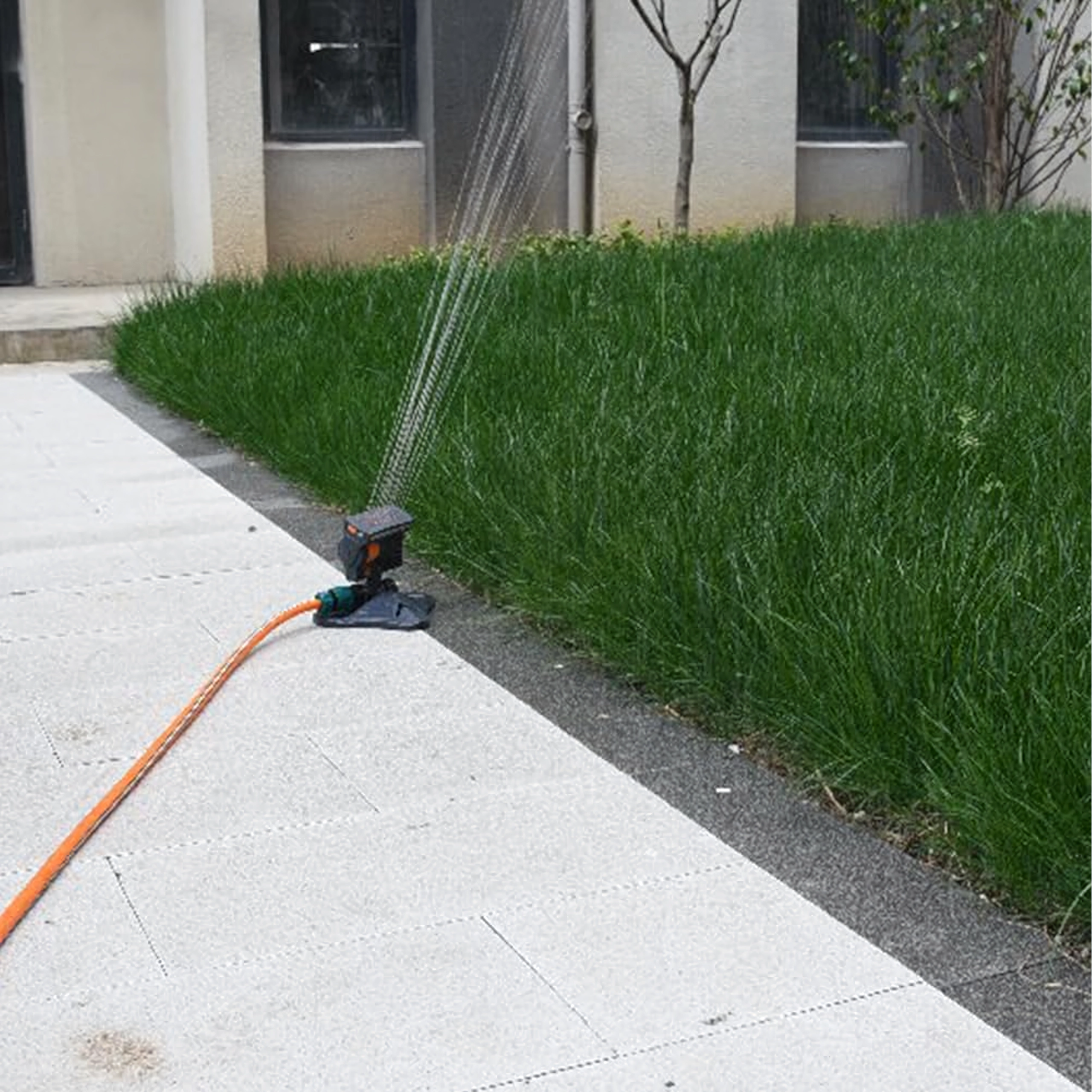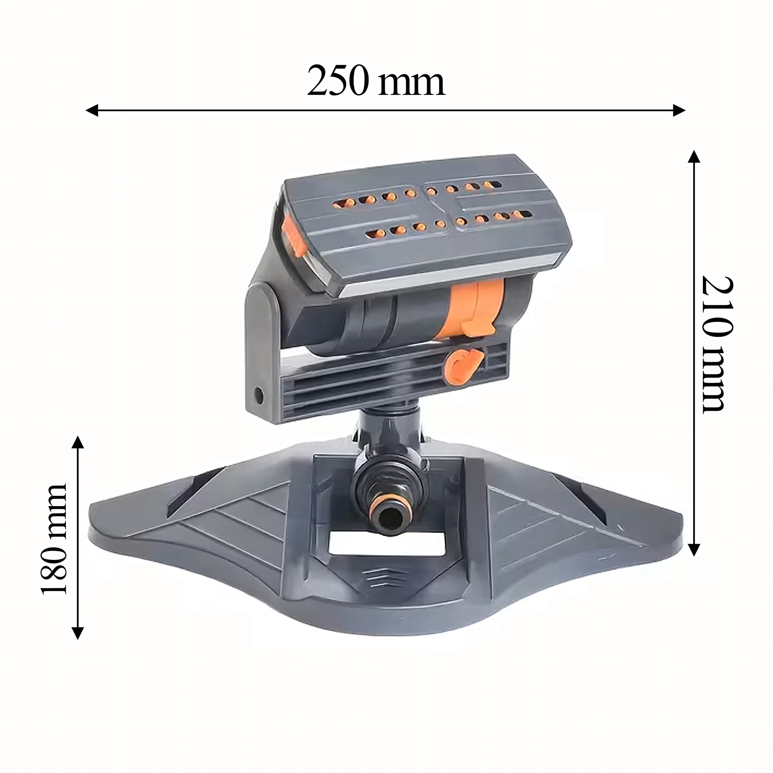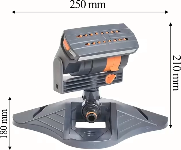 De robuuste en stabiele basis houdt de sproeier op zijn plaats, ook bij hogere druk. Een standaard slangkoppeling zorgt voor snelle aansluiting zonder gereedschap. Dankzij de eenvoudige bediening is de sproeier ideaal voor regelmatige, gelijkmatige en zachte bewatering van zowel grotere als kleinere oppervlakken.