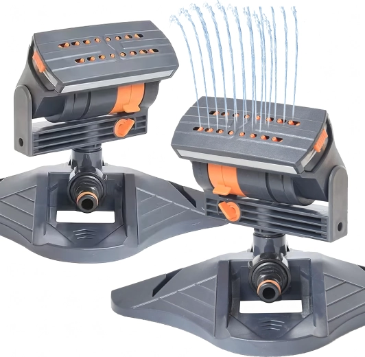 Bewerk je tuin efficiënt met een oscillerende sproeier die water gelijkmatig verspreidt via 16 precieze mondstukken. De verstelbare kop maakt het mogelijk om richting, hoek en sproeibreedte aan te passen, zodat je de dekking eenvoudig afstemt op de actuele behoeften van gazons, groentebedden of bloemperken.