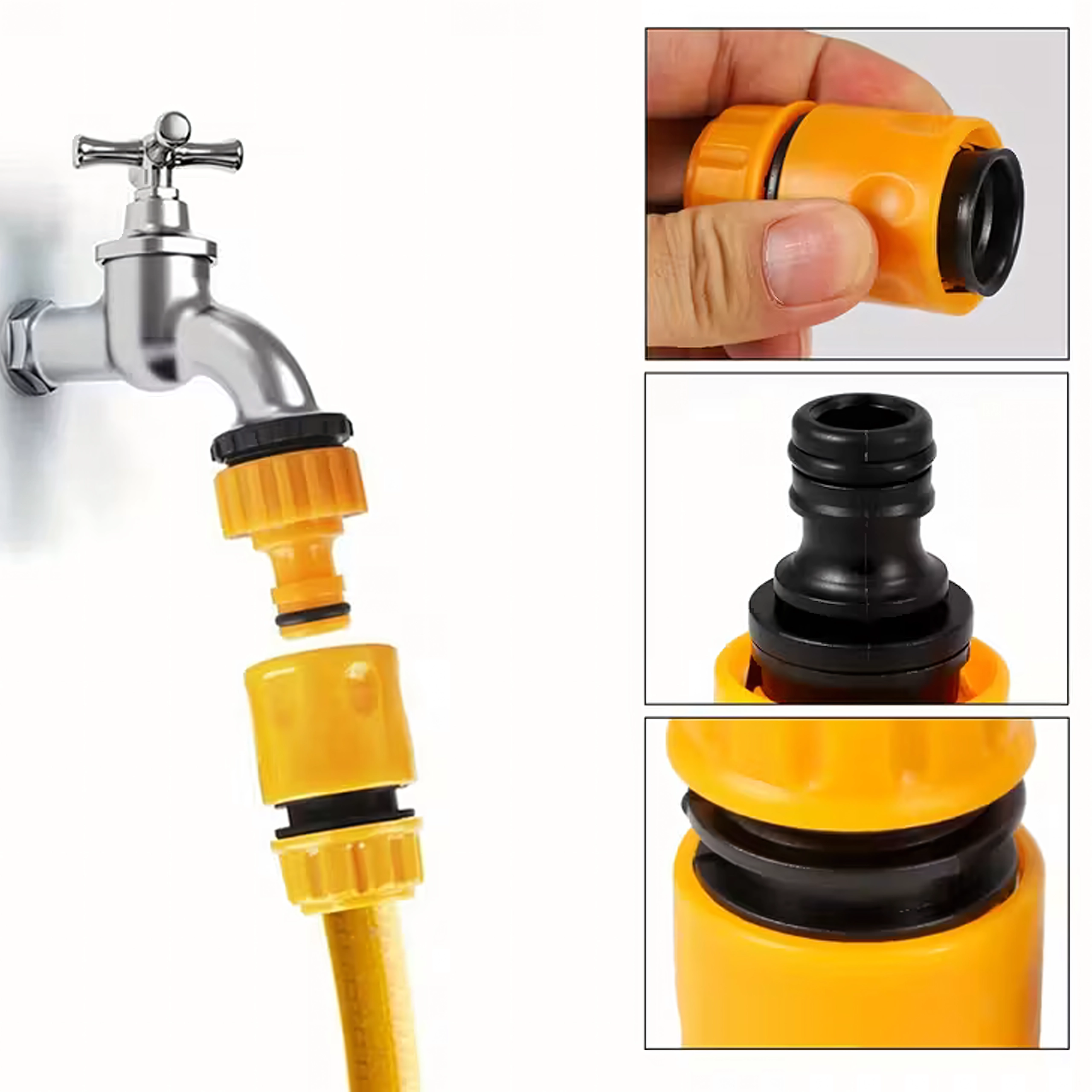 Geribbelde grips vergemakkelijken het aandraaien, zelfs met natte handen, terwijl rubberen O-ringen zorgen voor een dichte aansluiting en minimale waterverliezen. De duurzame kunststof constructie is licht, onderhoudsvriendelijk en ideaal voor dagelijks tuin besproeien, auto wassen en ander buitenwerk.