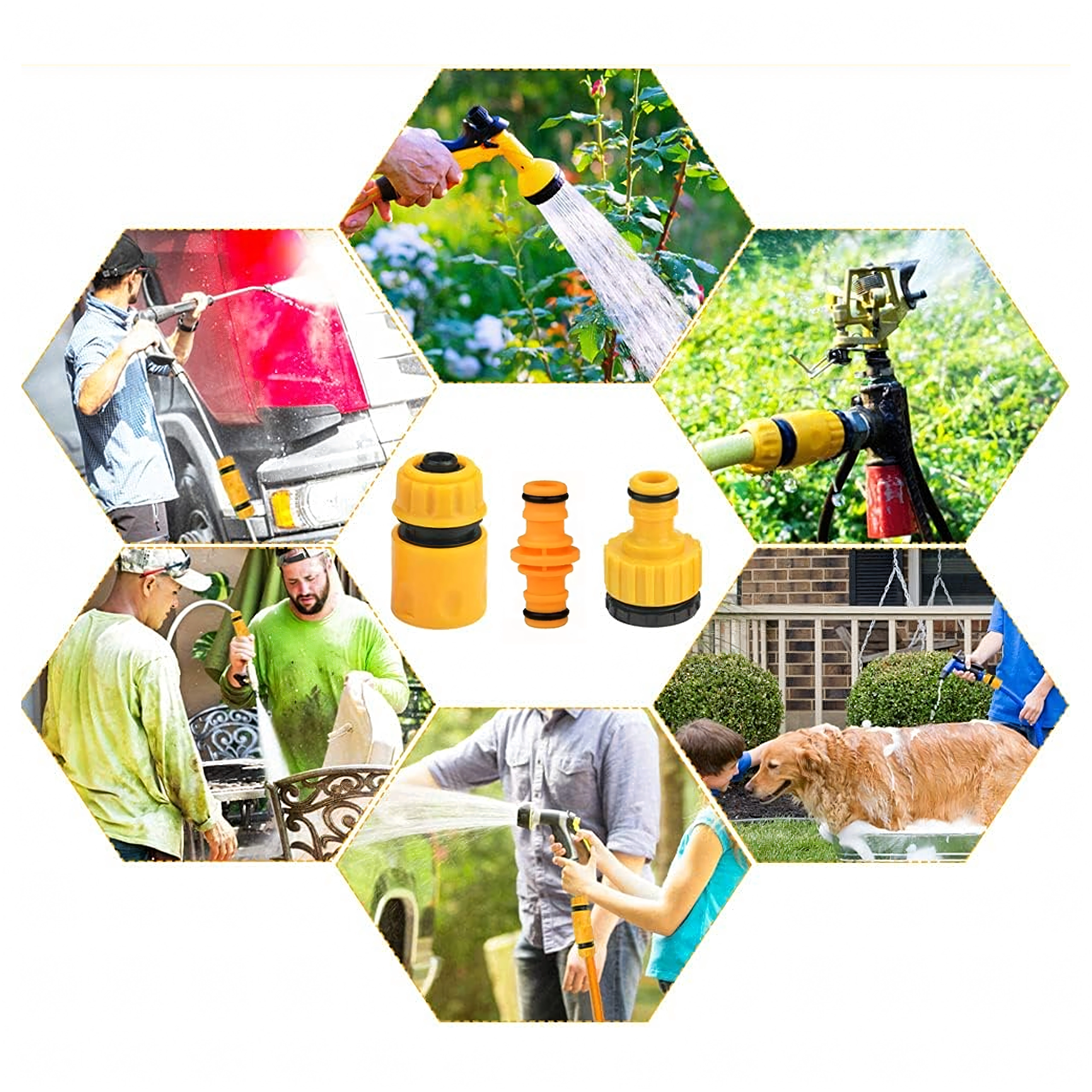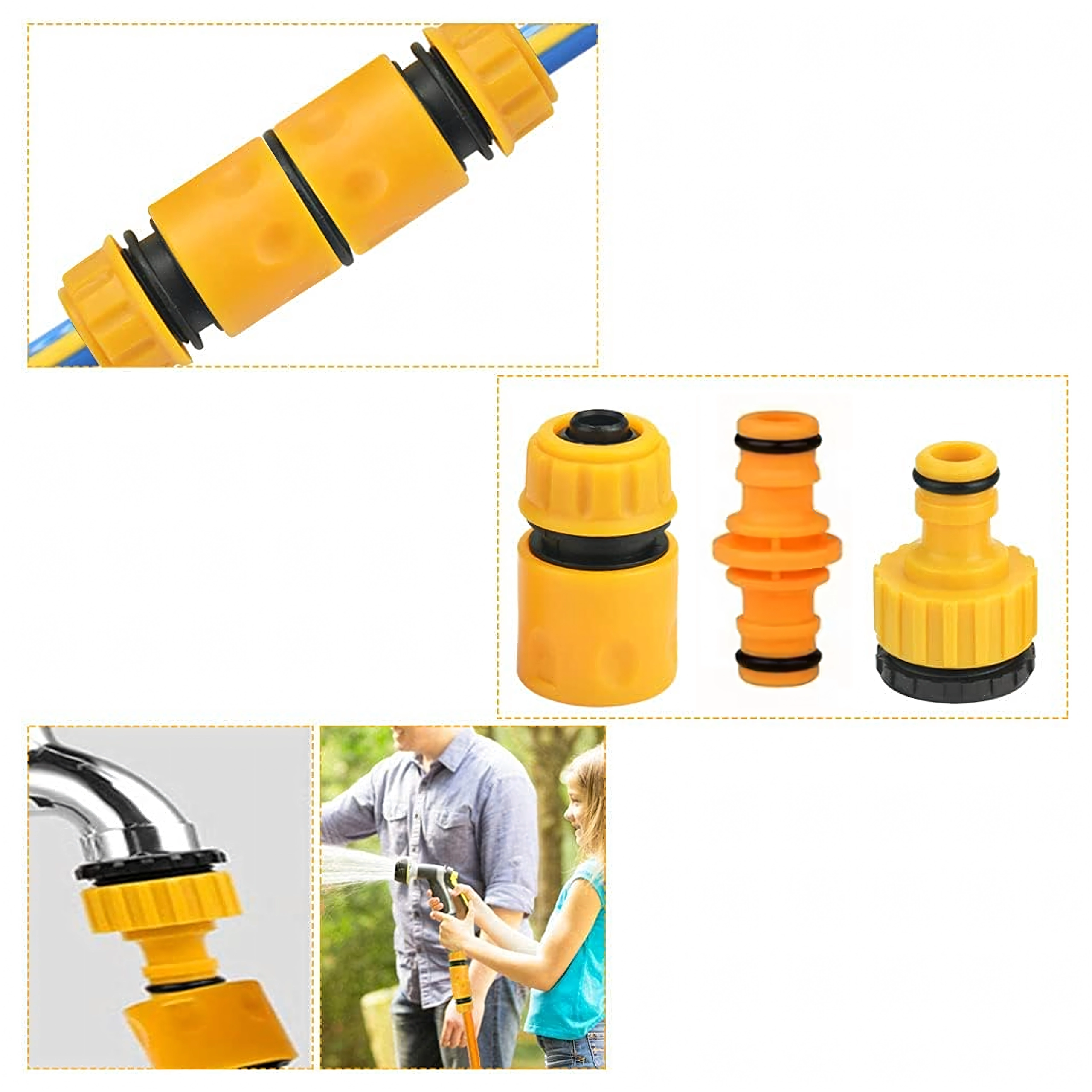 Deze praktische set snelkoppelingen en adapters voor tuinslangen maakt het eenvoudig om uw slang met de buitenkraan te verbinden, twee slangen aan elkaar te koppelen of razendsnel sproeikoppen en spuitpistolen te wisselen. Compatibiliteit met de standaardmaten 1/2" en 3/4" dekt het merendeel van huishoudelijke installaties.