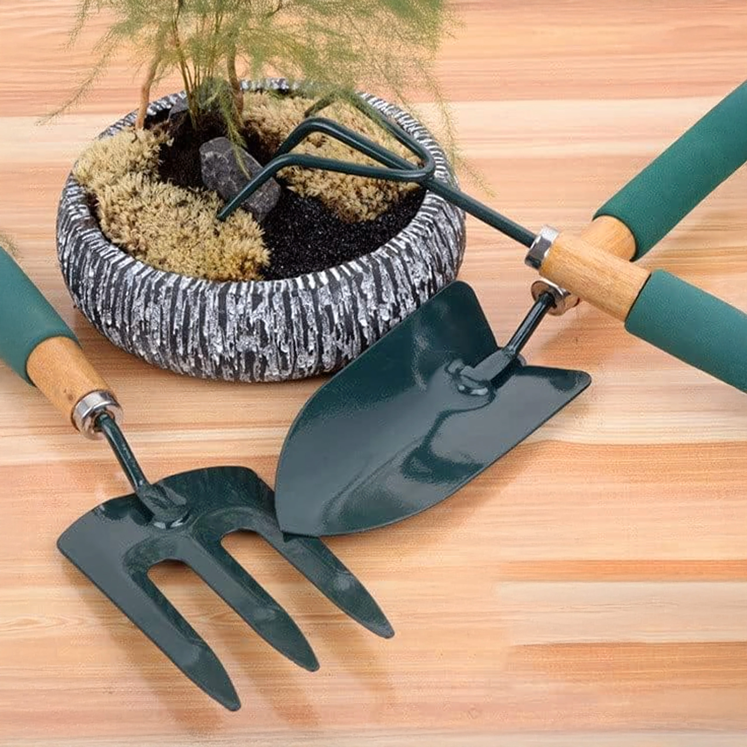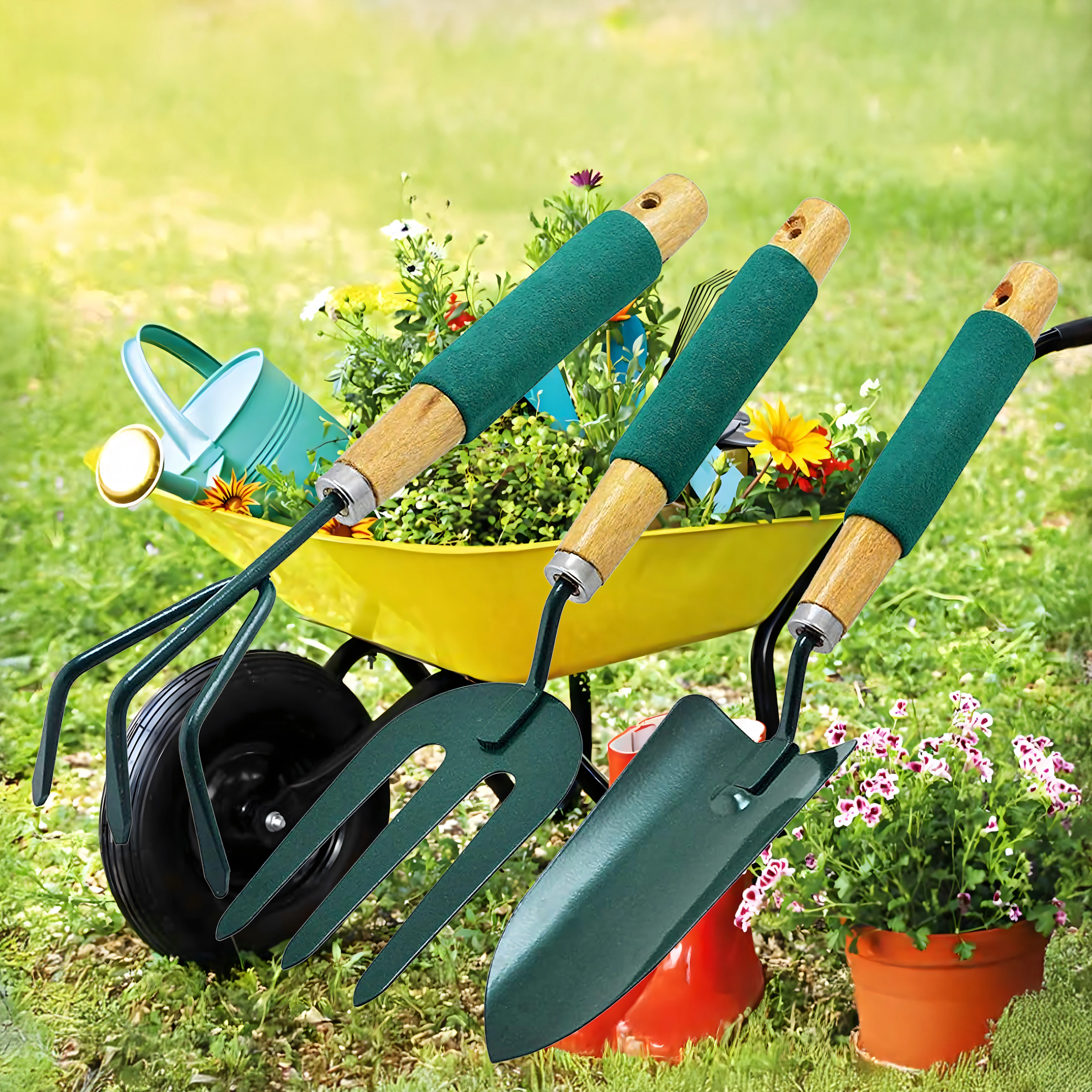 Deze compacte set handtuingereedschap vergemakkelijkt het dagelijkse werk in de tuin en op het balkon. Stevige metalen opzetstukken kunnen grond losmaken en beluchten, onkruid verwijderen en zaailingen uitplanten, terwijl de zachte handgrepen zekere grip en extra comfort bieden, ook bij langdurig gebruik.