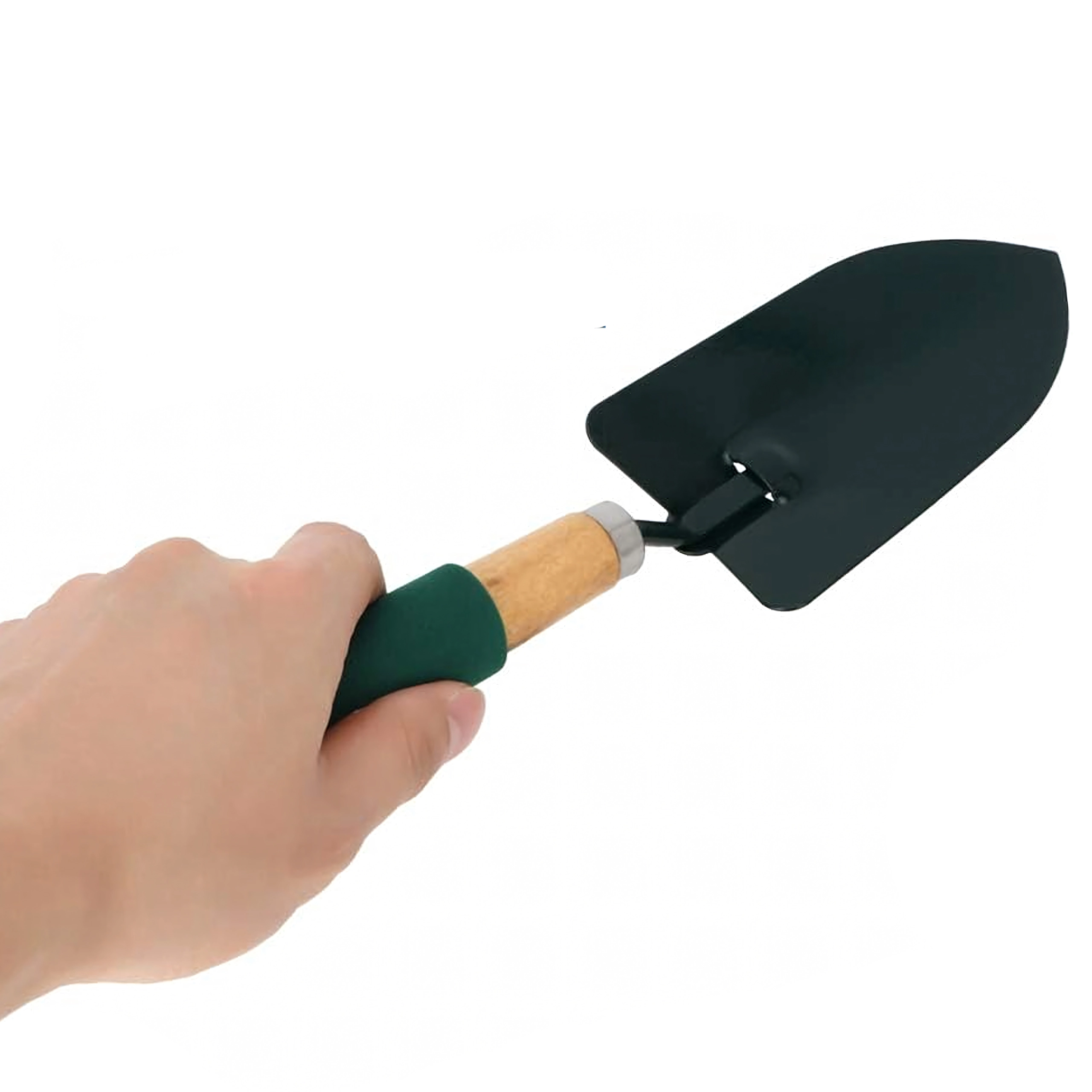 De zachte handgrepen op het houten handvat verminderen handvermoeidheid en zorgen voor zekerheid bij het werken in zowel droge als vochtige grond.
