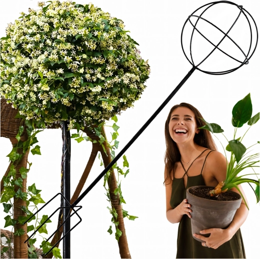 Deze veelzijdige metalen steun voor klimplanten is een uitstekende keuze voor rozen, eenjarige klimmers en kruiden. Het minimalistische zwarte design gaat natuurlijk op in het groen, terwijl de stevige constructie de stelen veilig op hun plek houdt, ook bij wind en regen. Het formaat van 50 × 10 cm bespaart ruimte en is geschikt voor kleine stadstuinen en terrassen.