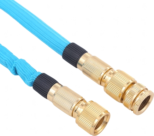 Lichte en duurzame uittrekbare tuinslang die bij waterdoorstroming verlengt van 3,4 m tot 7,5 m. Dankzij messing snelkoppelingen 1/2" en 3/4" zorgt hij voor een betrouwbare, lekdichte aansluiting, de slijtvaste textiele mantel voorkomt knikken en compact opbergen bespaart ruimte.
