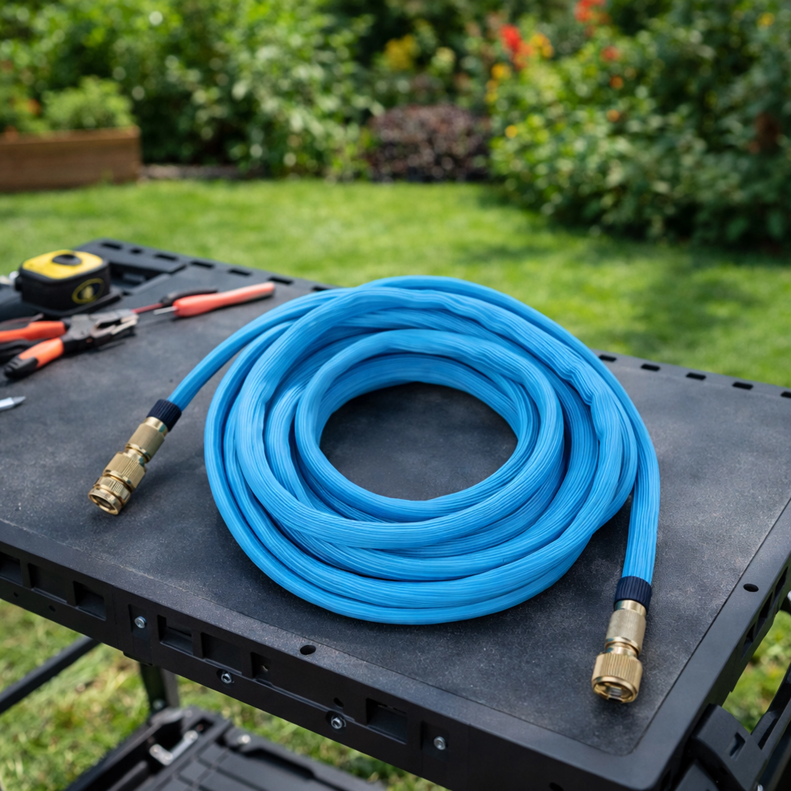 De duurzame textiele mantel beschermt de kern van de slang, vermindert draaien en in de knoop raken en verhoogt de flexibiliteit bij het hanteren. Dankzij de universele schroefdraad 1/2" en 3/4" sluit je de slang eenvoudig aan op standaard kranen en sproeiers.