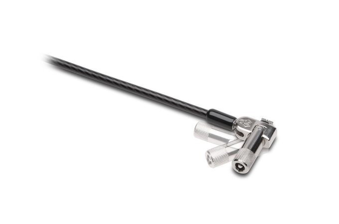 Dankzij de hoofdslotkop NanoSaver is het ideaal voor moderne, dunne apparaten, terwijl de extra kop T-Bar oudere en zakelijke modellen betrouwbaar vastzet. De unieke 5 mm sleutel zorgt voor comfortabele bediening van beide sloten en verhoogt de beveiliging tegen onbevoegde manipulatie.