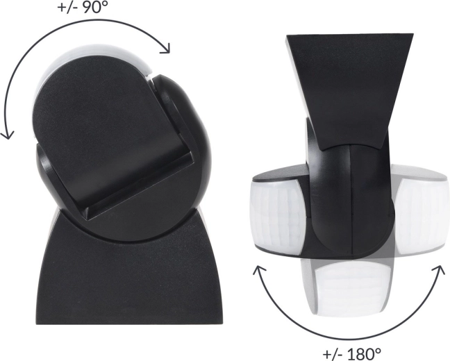 Met de geïntegreerde regelaars stel je nauwkeurig de drempel voor omgevingslicht (LUX) in voor werking van schemer tot zonsopgang en de inschakeltijd (TIME) van enkele seconden tot 15 minuten. Mechanische verticale en horizontale afstelling maakt het eenvoudig om de sensor precies daar te richten waar detectie nodig is. De montage is snel en eenvoudig – gebruik de meegeleverde pluggen.