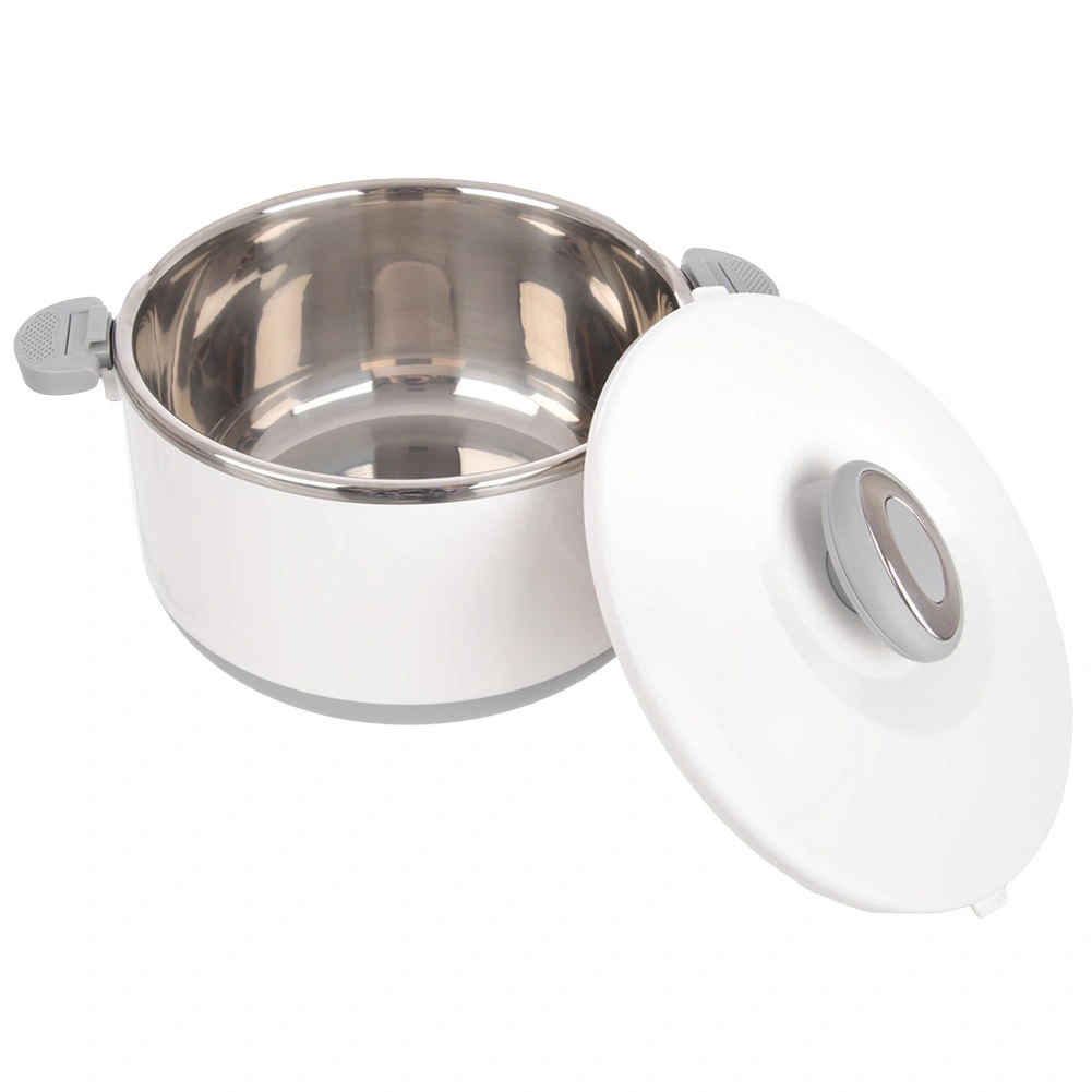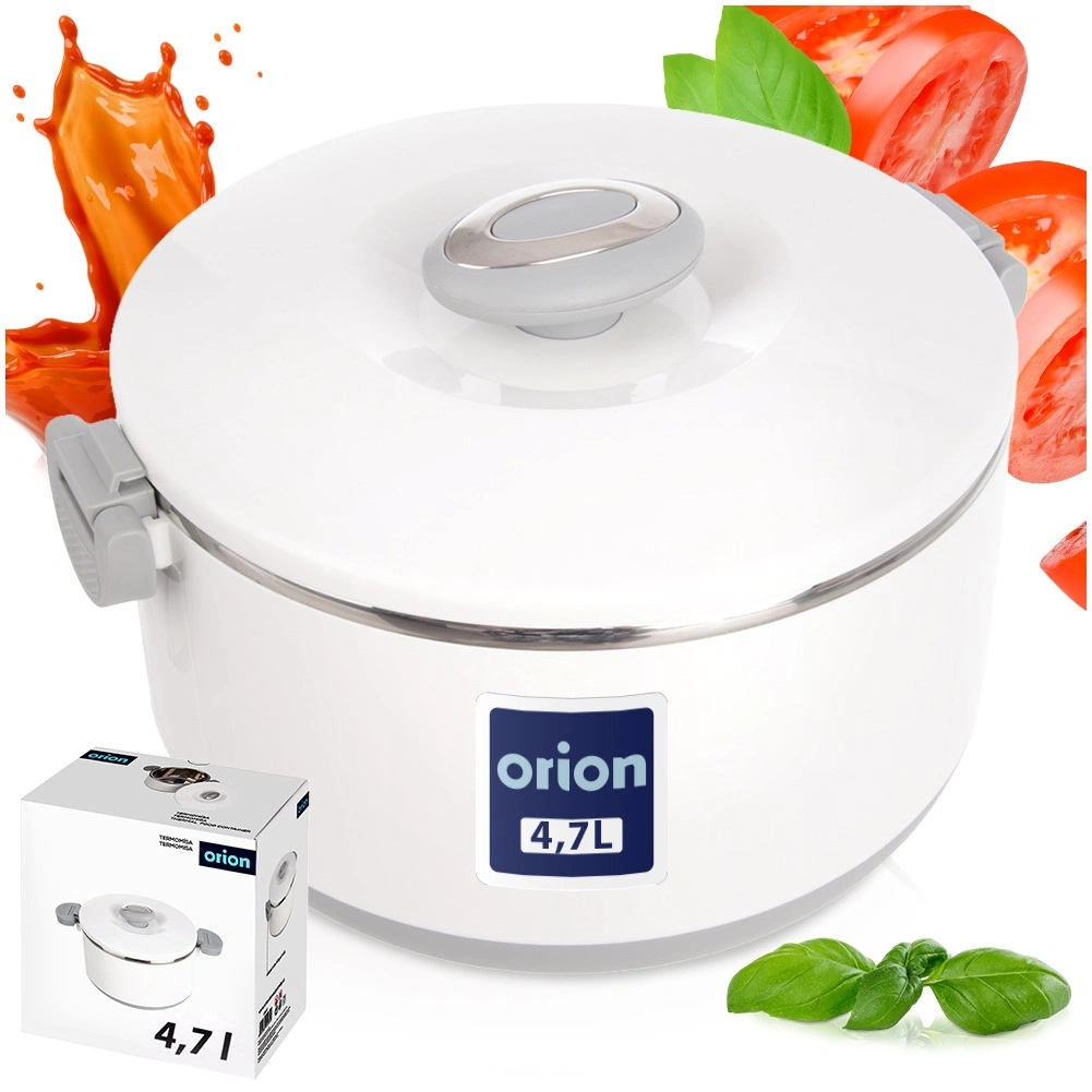 Houd eten langer warm of koud dankzij de praktische thermoschaal van roestvrij staal met een inhoud van 4,2 l. Hij heeft een isolerende dubbele wand, veilige zijsluitingen en comfortabele handgrepen voor eenvoudig dragen. Ideaal voor werk, school, onderweg en tuinfeesten.