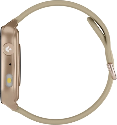 Verander je stijl in een oogwenk: crèmekleurig textiel- én siliconenbandje. Dankzij de ingebouwde microfoon en luidspreker bel je direct vanaf je pols; de spraakassistent versnelt de bediening.
