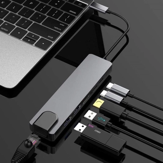 - 6‑in‑1 interfaces: USB‑C, USB‑A, HDMI, LAN en andere noodzakelijke poorten in één behuizing