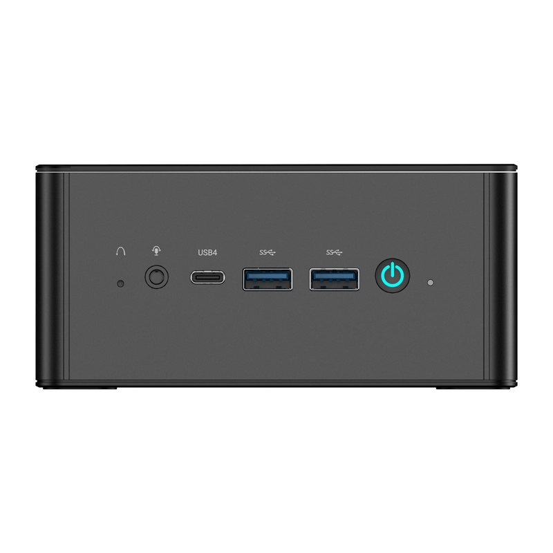 De brede poortselectie omvat 4× USB 3.2 Gen2, 2× USB4 (Alt/PD), 2× RJ45 2.5G Ethernet, HDMI 2.1, DP 1.4, Oculink, audio‑jack en DMIC. Draadloos verbind je via Wi‑Fi 6E en Bluetooth 5.3. De geavanceerde Cold Wave 2.2‑koeling met vloeibaar metaal en actieve warmtedissipatie voor RAM en SSD houdt temperaturen en geluidsniveau onder controle, ook bij langdurige belasting.