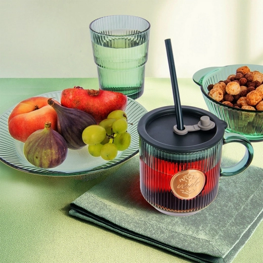• Modern uiterlijk: groen glas met geribde rand voor betere grip en decoratie