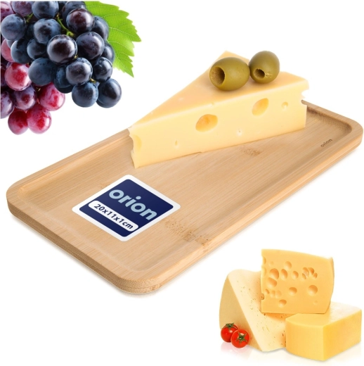 Universele rechthoekige bamboe schaal van 20 × 11 × 1,5 cm, ideaal voor het serveren van canapés, kazen, desserts of snacks. Natuurlijk bamboe geeft je tafel een elegante uitstraling en accentueert de presentatie van gerechten. Dankzij het compacte formaat past hij op de eettafel, het aanrecht en de buffettafel.