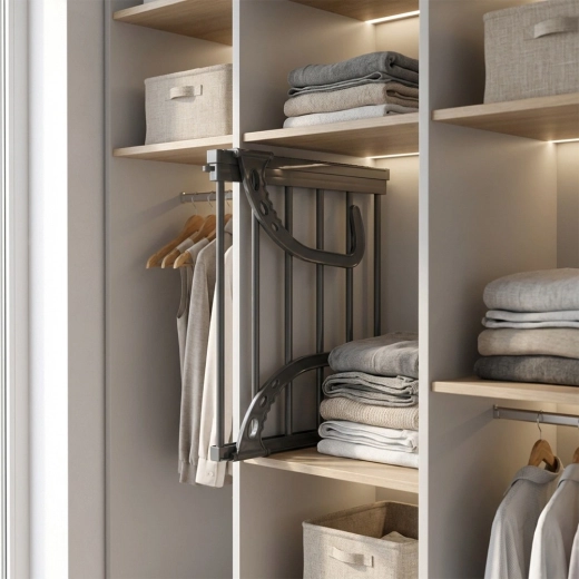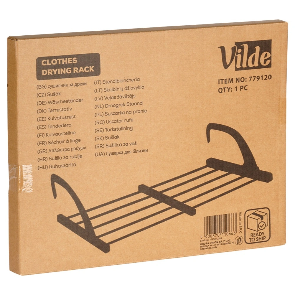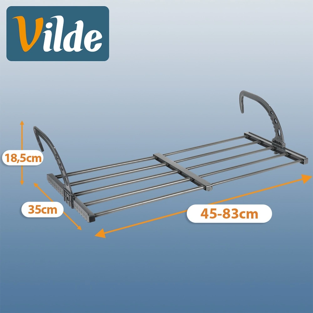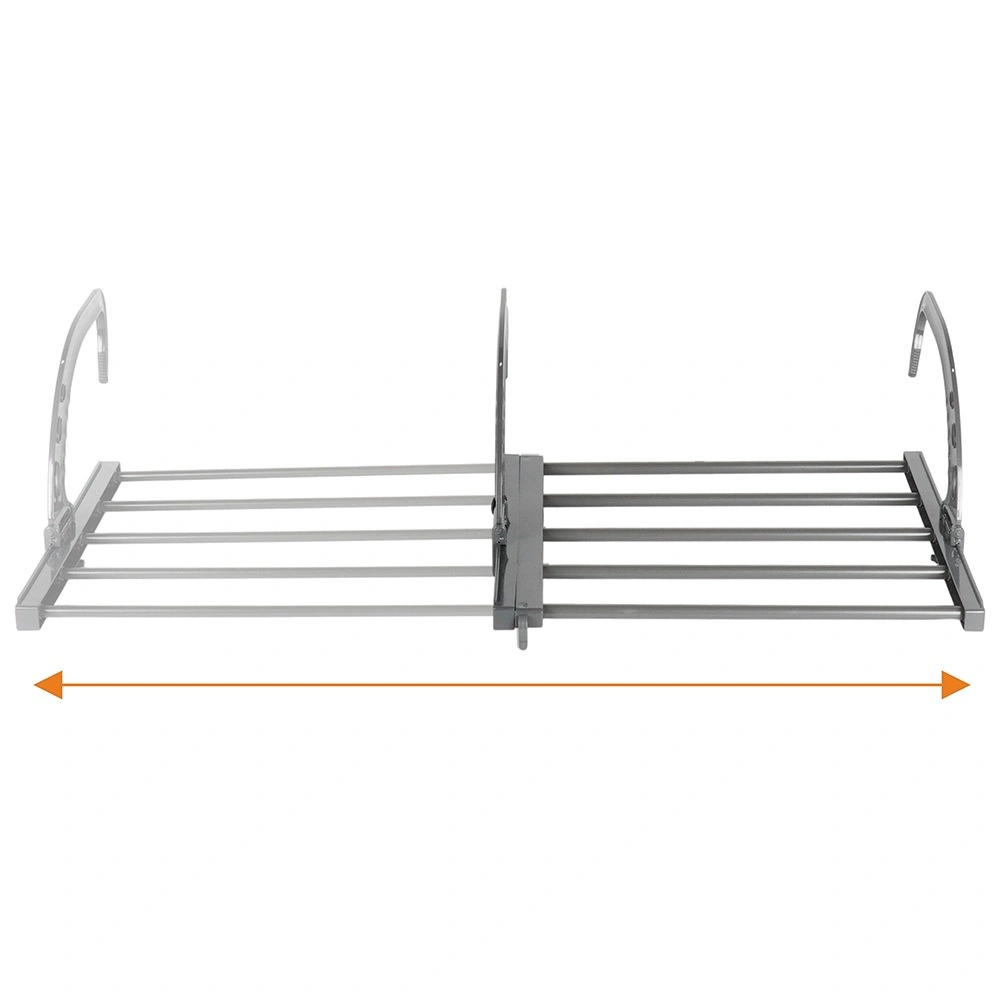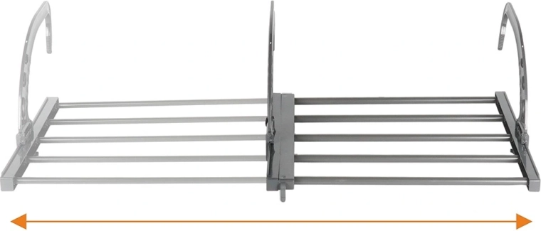 Praktisch uitschuifbaar droogrek voor de radiator bespaart ruimte en versnelt het drogen dankzij de warmte van de verwarming. Biedt een verstelbare breedte van 45–83 cm, een stevige metalen constructie en inklapbare haken voor eenvoudige montage op verschillende soorten radiatoren of balustrades. Ideaal voor kleine appartementen, badkamers en op het balkon.