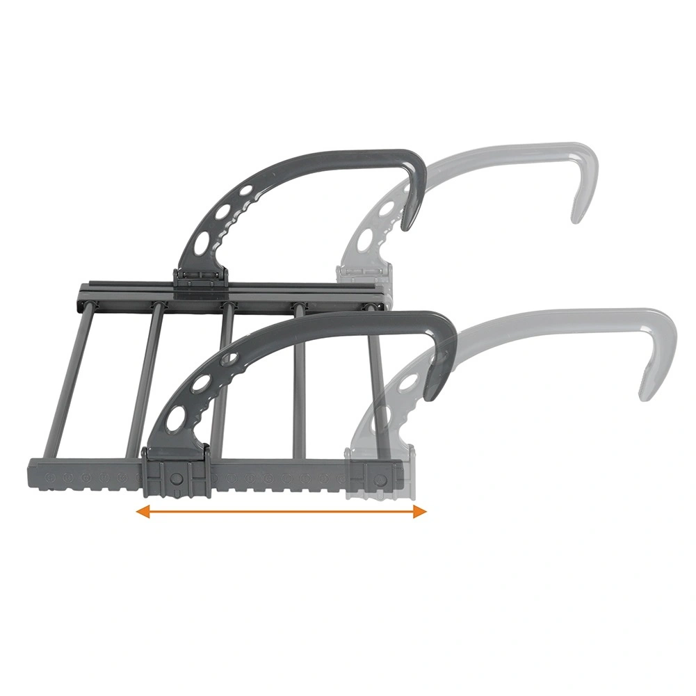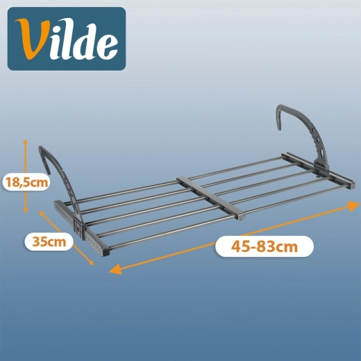 In hoogte verstelbare en inklapbare haken passen op radiatoren tot 13 cm breed en kunnen ook aan balkonleuningen worden gehangen.
