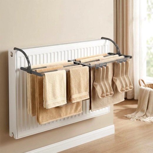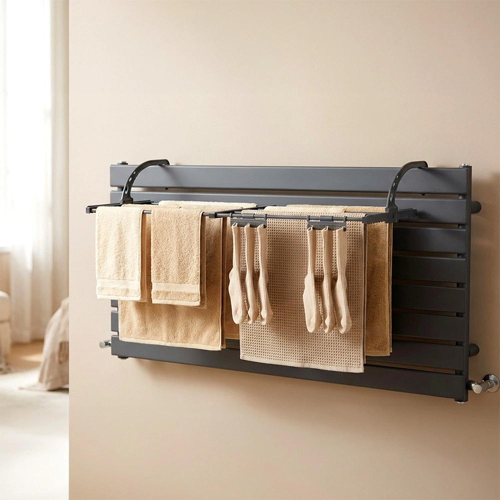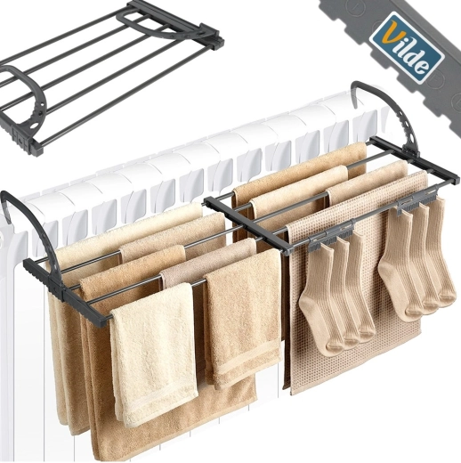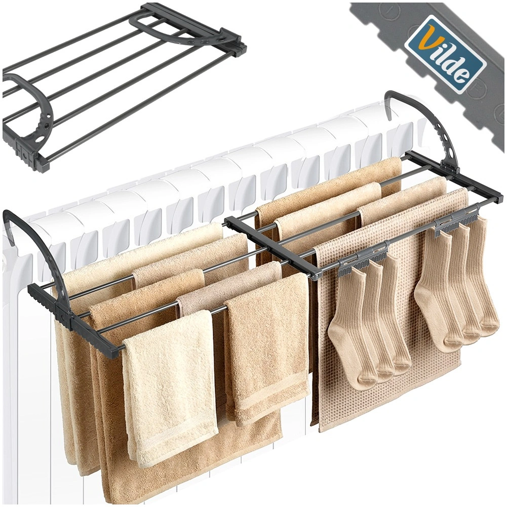 - Ruimtebesparend: montage aan radiator of balustrade, compact opvouwbaar ontwerp.