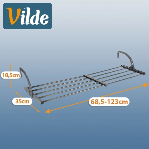 - Flexibel: traploos uitschuifbare breedte 68,5–123 cm, verstelbare afstand van de haken tot de radiator.
