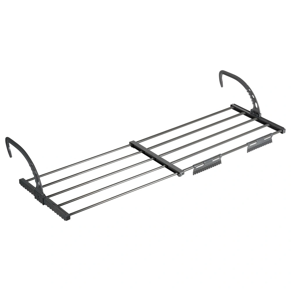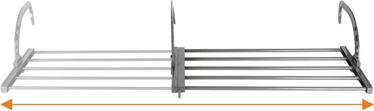 Verstelbare en opvouwbare haken passen stevig op verwarmingen (max. 13 cm) of op een balkonleuning. Snel te installeren zonder gereedschap.