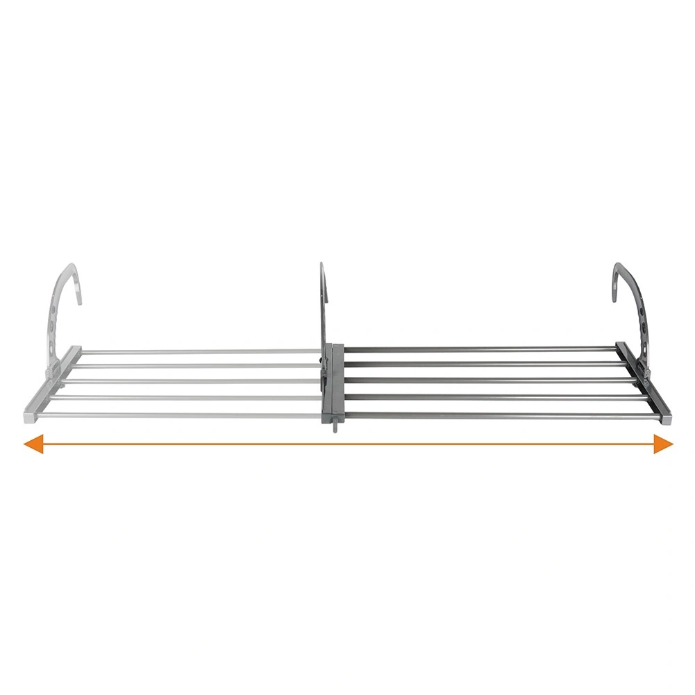 Praktisch droogrek voor wasgoed dat je aan een radiator of balustrade kunt hangen, bespaart ruimte en biedt tot 560 cm droogoppervlak. Dankzij de uitschuifbare breedte van 68,5–123 cm, opvouwbare haken en de stevige metalen constructie is het ideaal voor kleine appartementen, badkamers en balkons. Draagvermogen tot 9 kg.