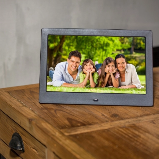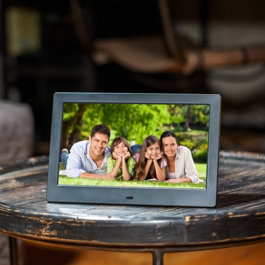 De elegante digitale fotolijst met een 10,1" IPS-display toont je foto’s in levendige kleuren en met scherpe details. Dankzij de resolutie van 1366 × 768 en brede kijkhoeken is het beeld vanuit elke hoek uitstekend. Je speelt moeiteloos foto’s (JPEG, BMP), video’s (MKV, MOV, AVI, MP4) en muziek (MP3, WMA) af – afzonderlijk of in de automatische modus.