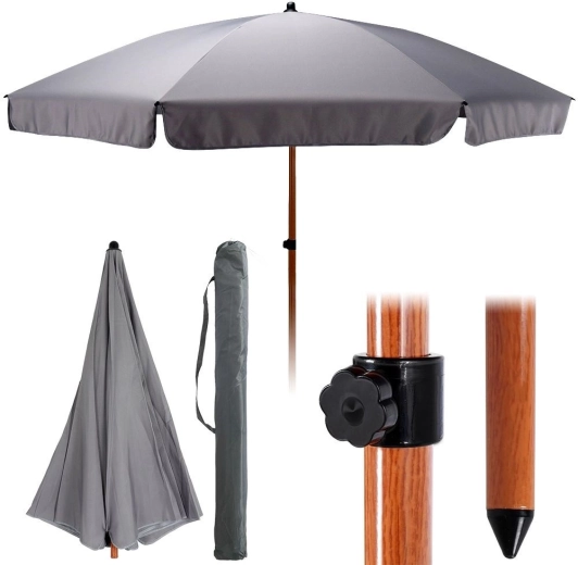 De elegante grijze parasol met een diameter van 200 cm is een ideale keuze voor tuin, balkon, terras en strand. De duurzame polyestertoile zorgt voor effectieve beschaduwing en UV-bescherming, terwijl de stevige metalen stang in houtlook zorgt voor stabiliteit en een lange levensduur. Dankzij de traploze hoogteverstelling pas je de schaduw eenvoudig aan de actuele omstandigheden aan.