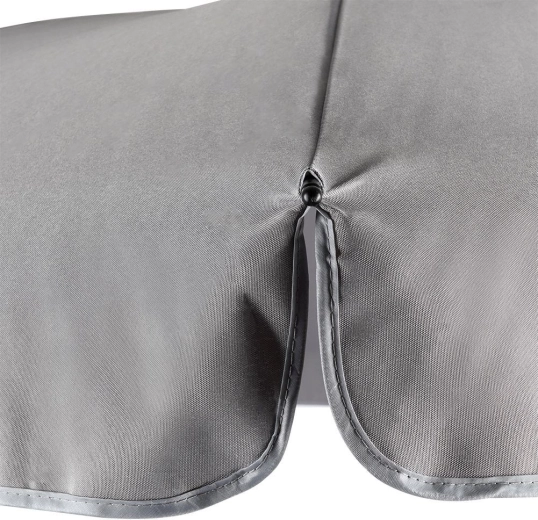 De meerdelige grijze kap van duurzaam polyester biedt aangename schaduw en beschermt tegen zonnestraling in de tuin en op het strand.