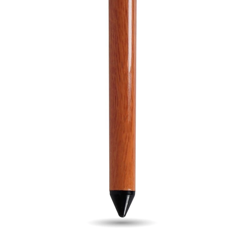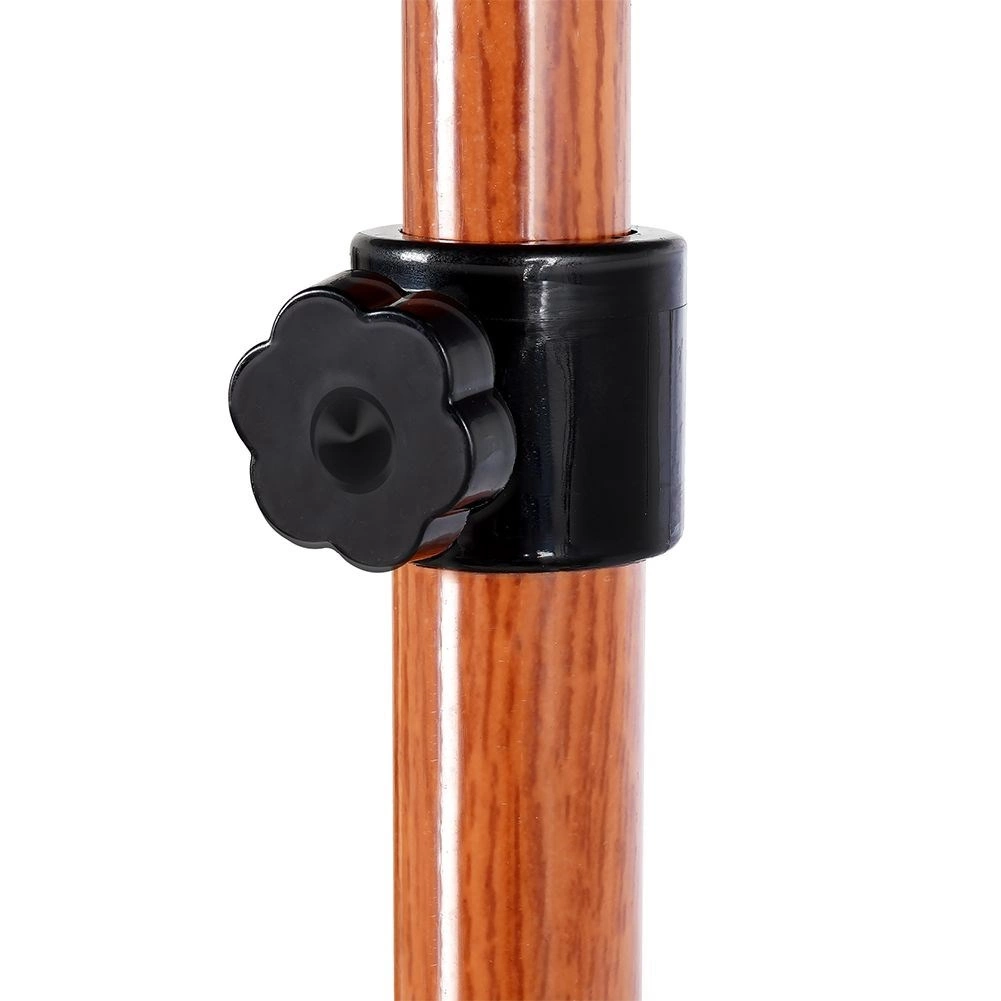 De stevige metalen stang met klem zorgt voor stabiliteit en eenvoudig verstellen van de hoogte, terwijl de uitstraling doet denken aan natuurlijk hout.