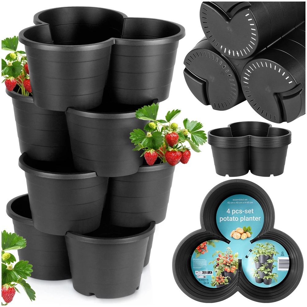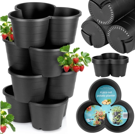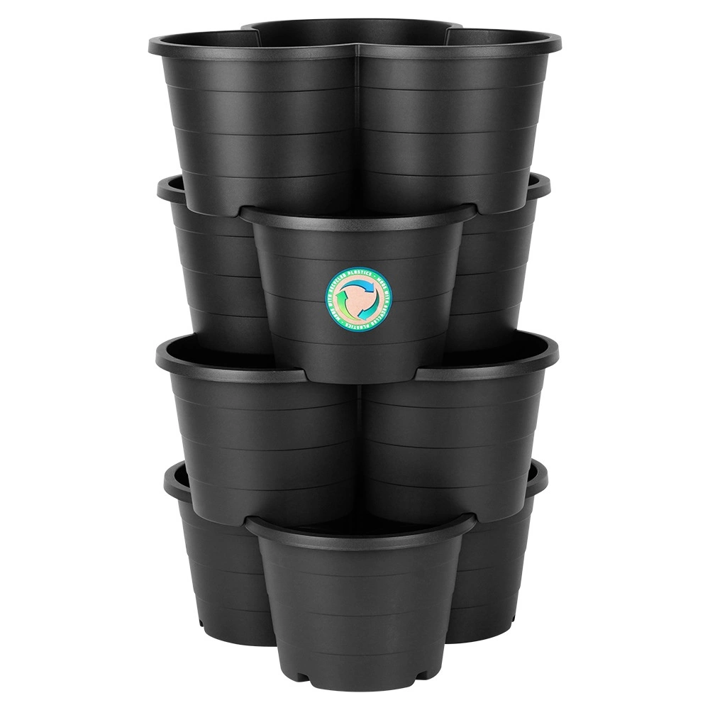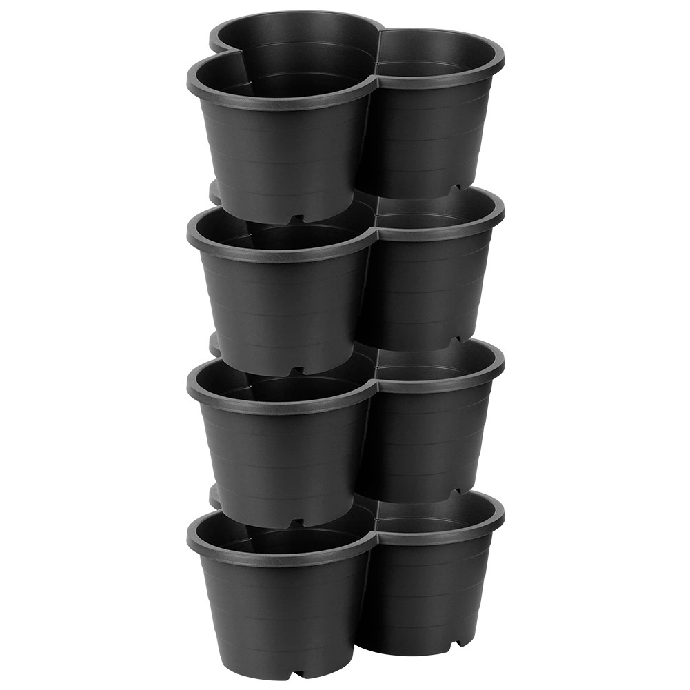 Creëer je eigen verticale tuin, zelfs op een kleine ruimte. Deze stapelbare set van 4 zwarte kunststof bloempotten maakt het mogelijk om tot 3 planten per module te kweken, met afvoergaten voor een gezonde groei en weerbestendigheid voor gebruik buitenshuis het hele jaar door.