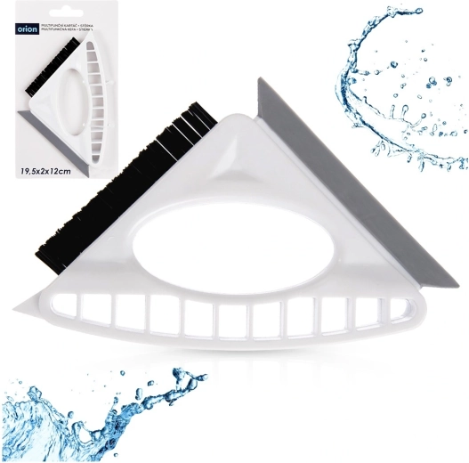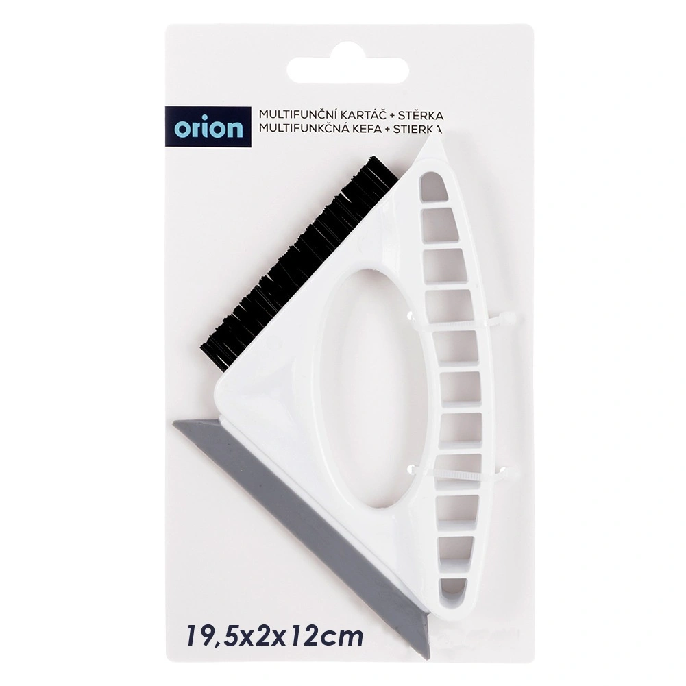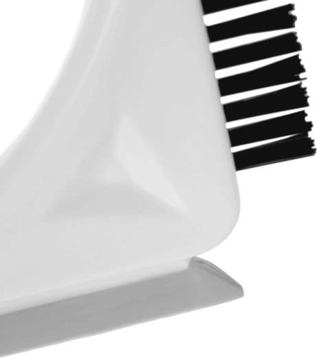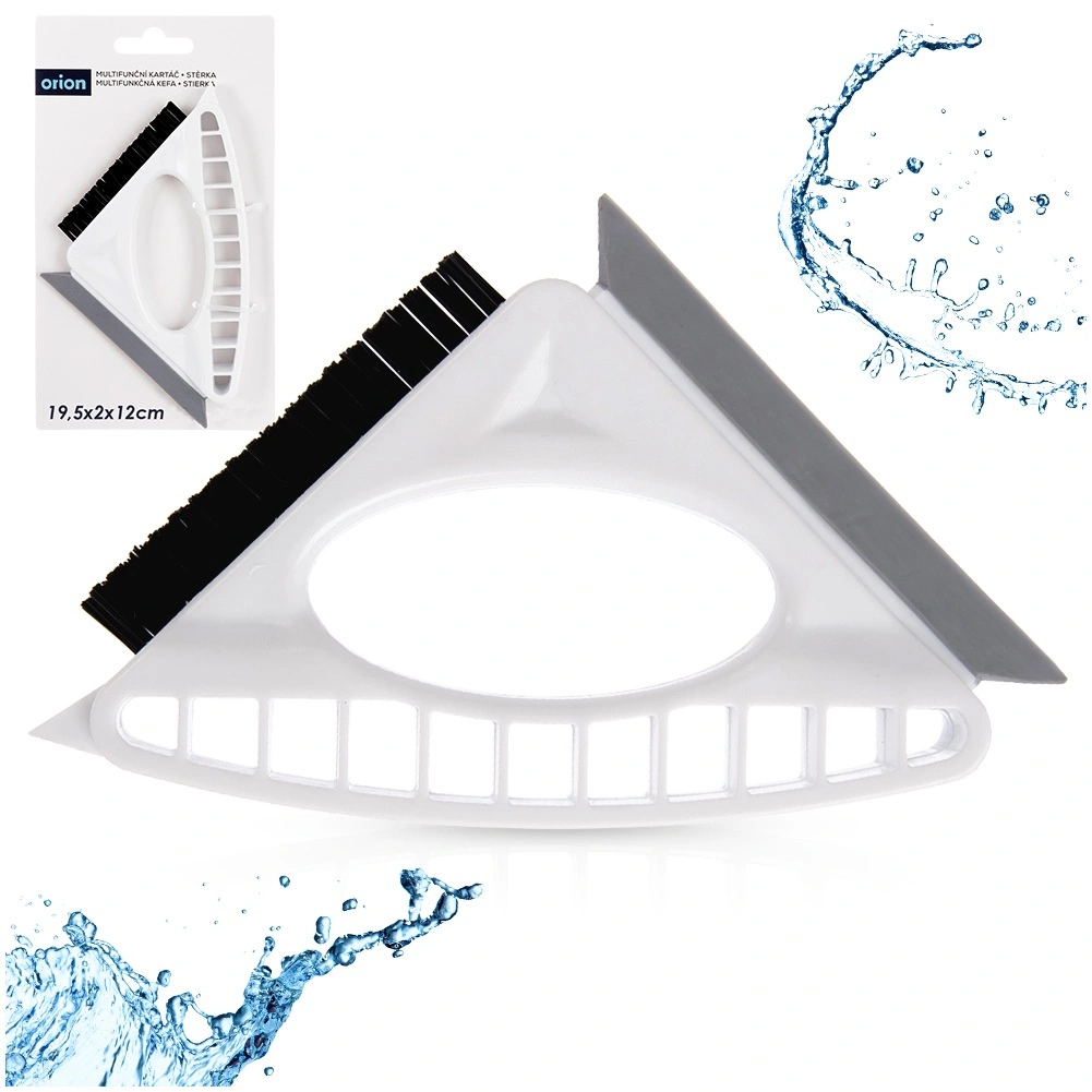 Praktisch reinigingshulpmiddel dat borstel, trekker en schraper in één combineert. Dankzij de ergonomische greep en de stevige, harde haren reinig je gemakkelijk voegen, hoeken en moeilijk bereikbare plekken. De geïntegreerde flexibele trekker veegt snel water van glas, tegels of roestvrijstalen oppervlakken en de schraper verwijdert aangekoekte vervuiling. Ideaal voor in de keuken en badkamer.