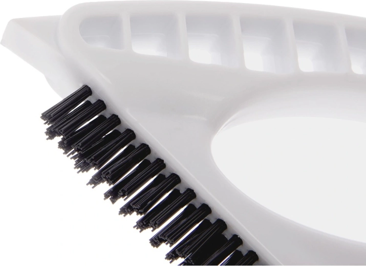 Duurzame, stijve borstelharen pakken vuil in voegen en lastig bereikbare hoekjes aan zonder het oppervlak te beschadigen.
