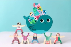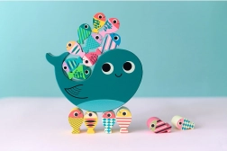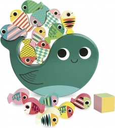 Stap visjes op de walvis zonder dat hij omvalt! Dit spel is niet alleen heel leuk, maar stimuleert ook de fijne motoriek en oog-handcoördinatie van kinderen. Hoogwaardige materialen en een milieubewuste productie verzekeren dat het spel niet alleen veilig is, maar ook vriendelijk voor het milieu.