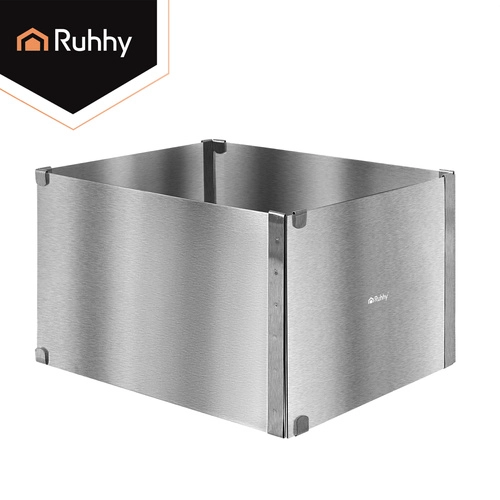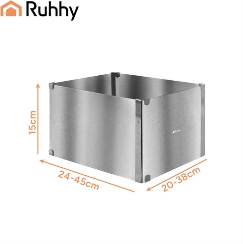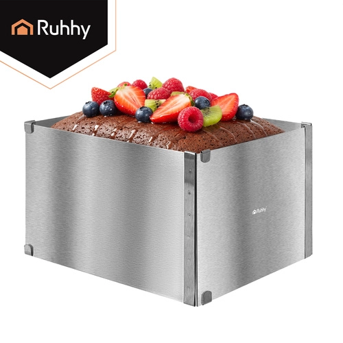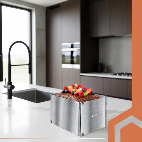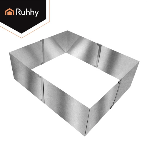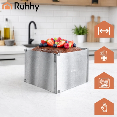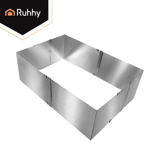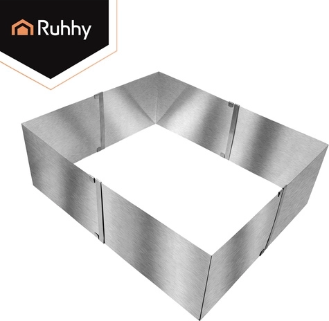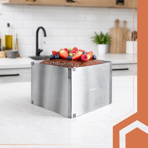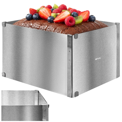 Praktische verstelbare RUHHY-vorm van roestvrij staal voor bakken en het opbouwen van desserts. Dankzij de traploze maatverstelling van 20–38 × 24–45 cm en een hoogte van 15 cm pas je het formaat eenvoudig aan elk recept aan. Stevige klemmen houden de instelling vast, hoogwaardig roestvrij staal is duurzaam en geschikt voor veilig contact met levensmiddelen, en eenvoudig onderhoud inclusief vaatwasserbesparing van tijd.