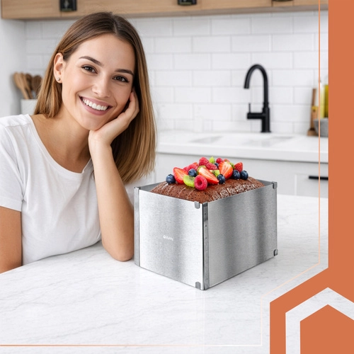 Dankzij het bereik van 20–38 × 24–45 cm en de hoogte van 15 cm maak je zowel lage plakken als hoge meerlagige taarten. Stabiele klemmen behouden de gekozen maat zelfs bij maximale uitrekking en de dichte constructie minimaliseert het uitlekken van vullingen tijdens bakken en koelen.
