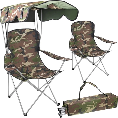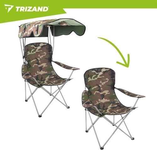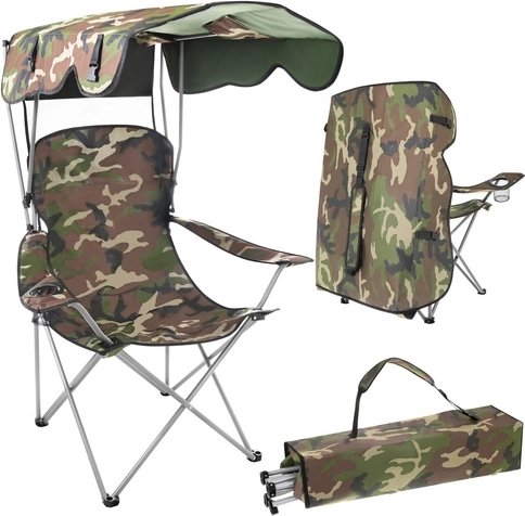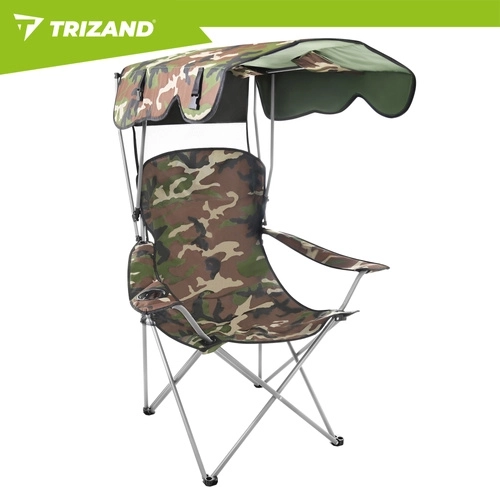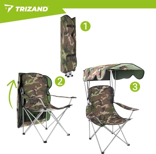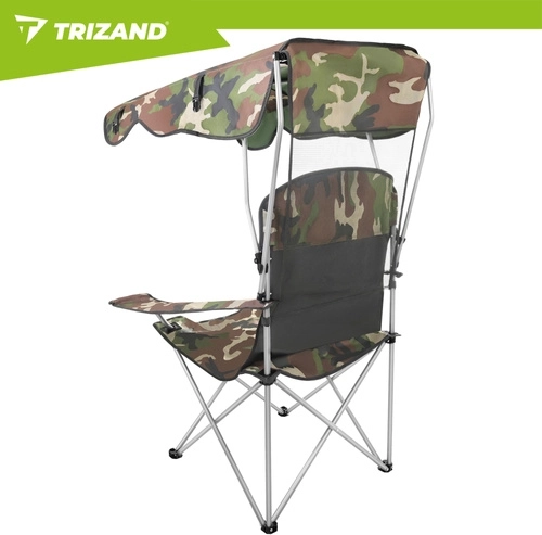 Opvouwbare vissersstoel met muggennet en luifel TRIZAND Panama, camouflage