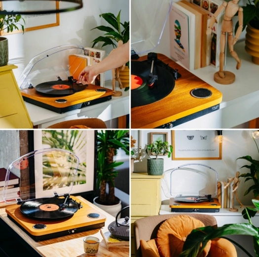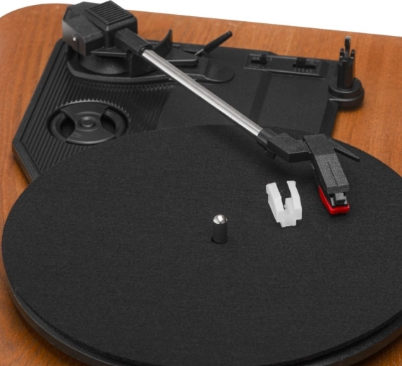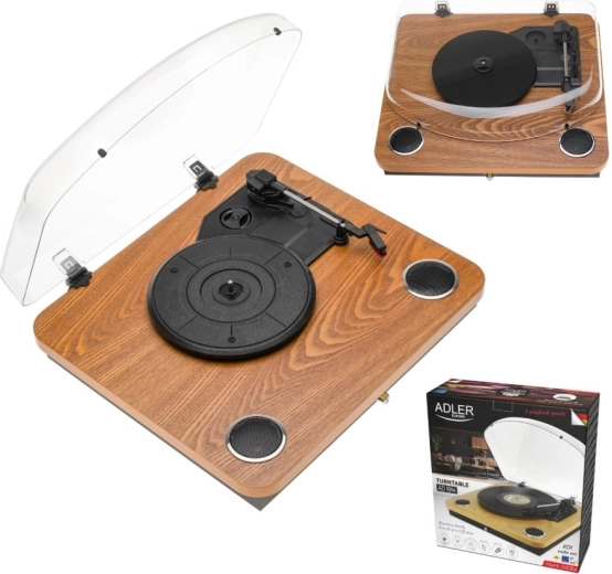 De elegante platenspeler met houtdecor speelt je platen af op 33 1/3, 45 en 78 rpm en is compatibel met 7”, 10” en 12” formaten. De ingebouwde stereoluidsprekers 2 × 0,8 W zorgen voor helder en aangenaam luisteren zonder extra apparatuur, terwijl je via de RCA-uitgang eenvoudig een externe versterker of luidsprekers kunt aansluiten.