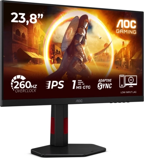 Krijg een voorsprong met de 23,8" gamingmonitor van AOC met een Fast IPS‑paneel en een verversingssnelheid tot 240 Hz. Geniet van een snelle responstijd, vloeiend beeld, rijke kleuren en ergonomie met draaiing naar portret (Pivot) – ideaal voor competitief gamen én dagelijks werk.