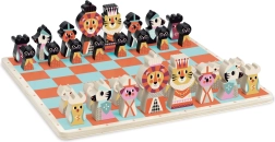 We introduceren een houten schaakspel met dierenmotieven, ideaal voor kinderen vanaf 6 jaar. Dit spel bevordert niet alleen strategisch denken, maar ontwikkelt ook de zintuigen dankzij de kleurrijke en speelse vormgeving. Het schaakbord en de stukken zijn geïllustreerd door de talentvolle Ingela P. Arrhenius, een bekende Zweedse kunstenares wiens passie voor retrostijl in elk detail van deze set zichtbaar is.