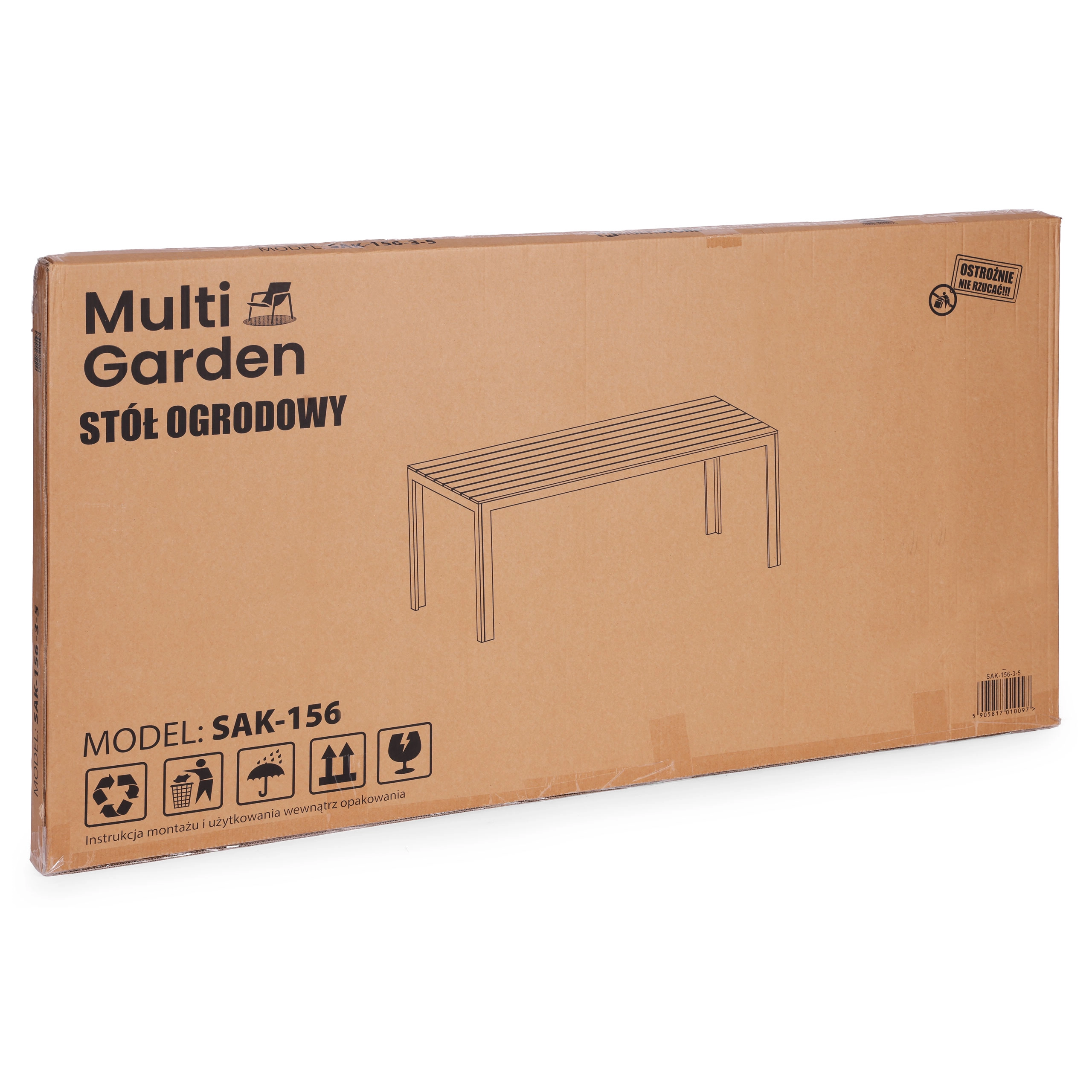 De moderne tuintafel MULTIGARDEN biedt comfortabele zitplaatsen voor 6 personen en een ruim blad van 156 × 78 cm. Het duurzame stalen frame met oppervlaktebehandeling en het polywood blad met houtlook zorgen voor weersbestendigheid, eenvoudig onderhoud en stabiliteit tot 150 kg. Ideaal voor terras, balkon en tuin.