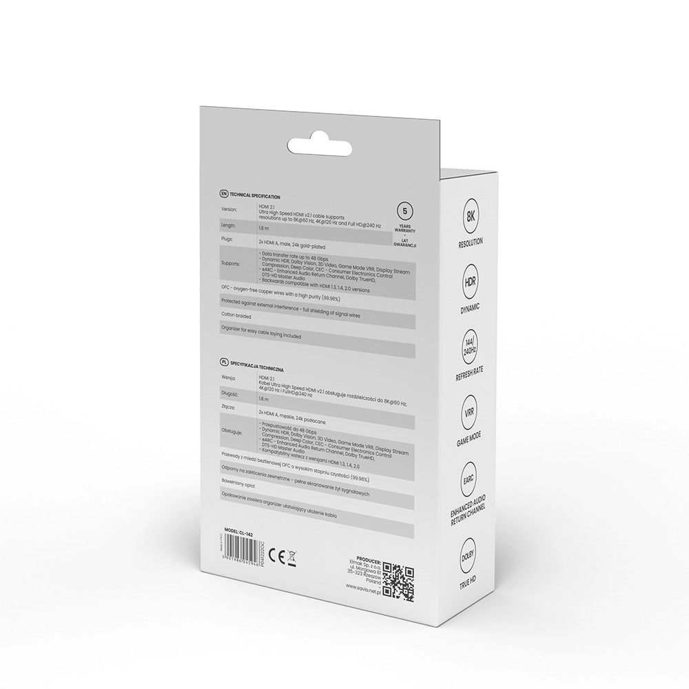 Geniet van perfect vloeiende video en helder geluid met de HDMI 2.1-kabel. Ondersteuning voor resoluties 8K@60 Hz en 4K@120 Hz garandeert topprestaties bij gamen en het bekijken van films. Vergulde connectoren en meerlaagse afscherming zorgen voor een stabiele overdracht zonder storingen.
