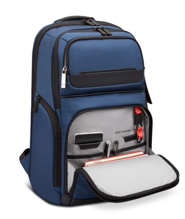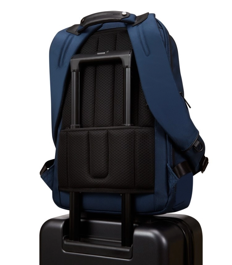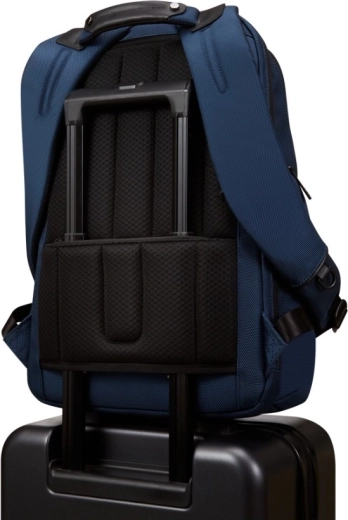 De organisatie is maximaal efficiënt: het aparte, gevoerde vak beschermt laptops tot 16″, er is een RFID-blokkerend vak voor kaarten en documenten, een Softline vak voor een bril, een Fidlock-rits voor snelle bevestiging van een sleutelhanger en een paar afsluitbare flesvakken. Verborgen snelle-toegangsvakken met beveiliging en een doorvoer voor kofferhandvat maken dagelijks woon-werkverkeer en reizen eenvoudiger.