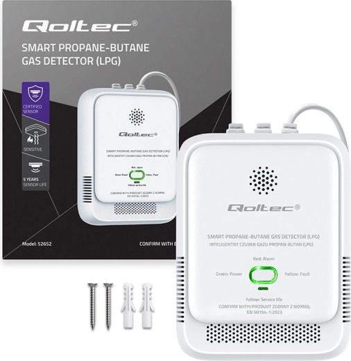 Betrouwbare LPG-detector beschermt uw huis tegen lekkage van propaan-butaan. Snelle detectie, luid waarschuwingssignaal 85 dB en LED-lichtalarm waarschuwen tijdig voor gevaar. Halfgeleidersensor met hoge nauwkeurigheid, ononderbroken monitoring 24/7, autodiagnose en TEST-knop voor eenvoudige functietest. Certificering EN50194-1:2023 bevestigt kwaliteit en veiligheid.