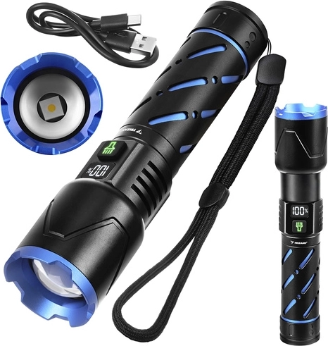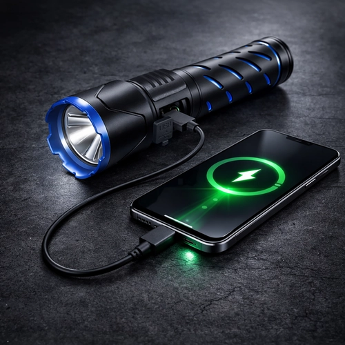 Dankzij de 21700-accu met een capaciteit van 5000 mAh haalt de zaklamp 3–12 uur gebruik (afhankelijk van de modus). Opladen via USB‑C is snel en comfortabel, en er is een USB-uitgang voor de powerbankfunctie. Het digitale display op de lamp toont de actuele batterijlading, zodat je altijd weet wanneer het tijd is om op te laden.
