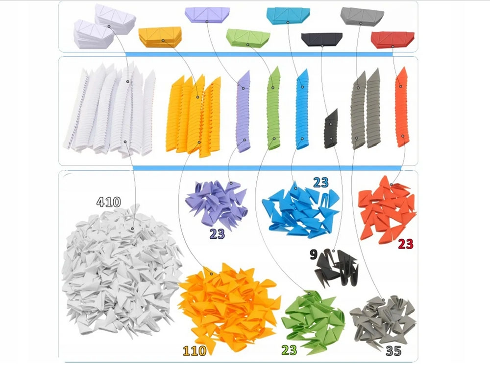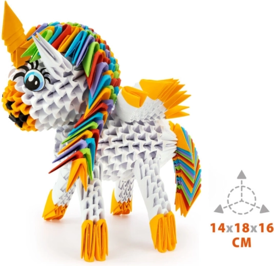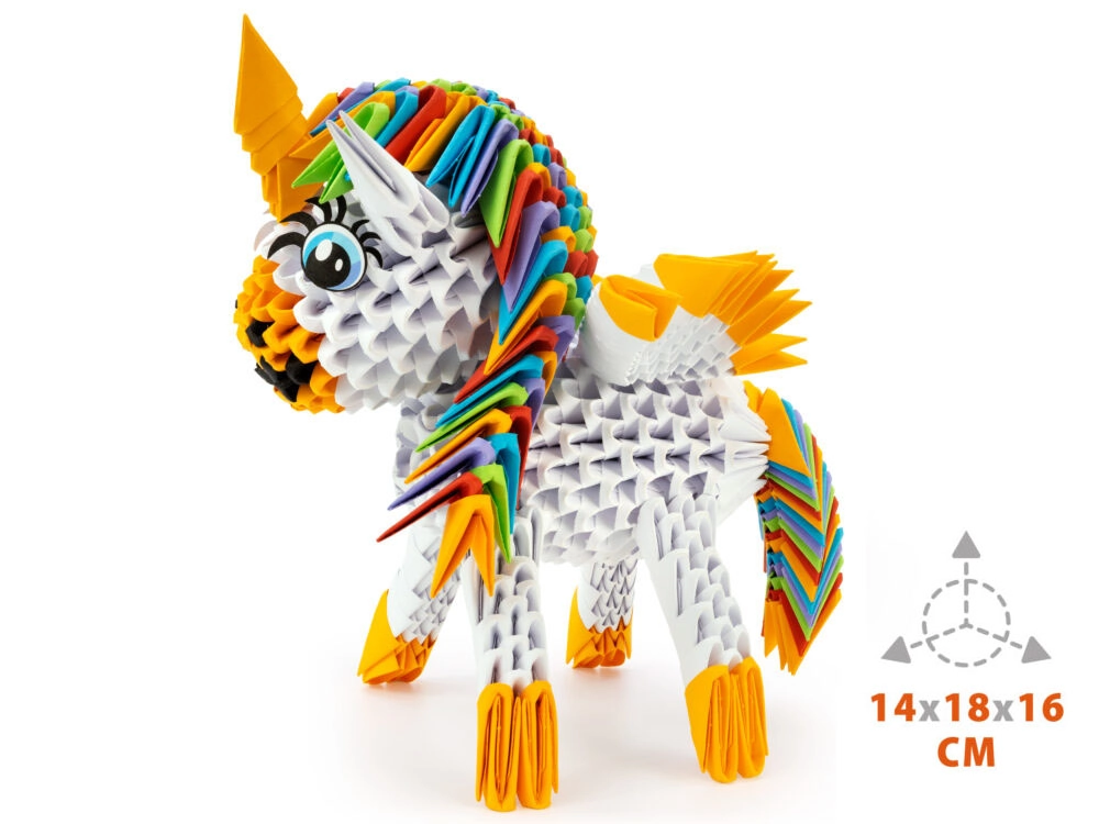 Ontdek creatieve plezier met modulair origami, dat de verbeelding, fijne motoriek en concentratie ontwikkelt. Dankzij de gepatenteerde vorm van de modules met aangewezen vouwlijn vouw je het basisdeel in drie eenvoudige stappen en verbind je de afzonderlijke modules zonder lijm tot een stevige eenhoornfiguur.