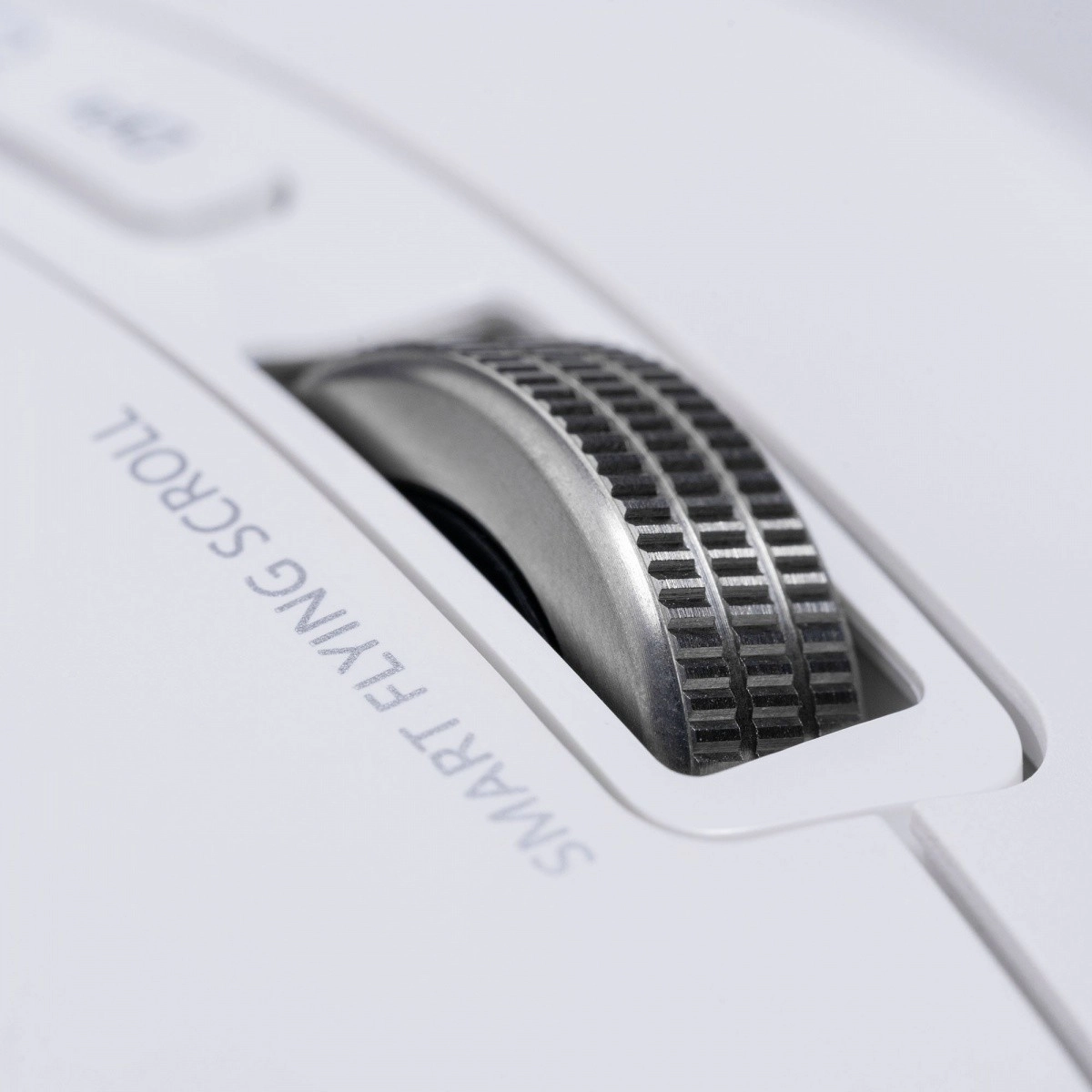 Het metalen scrollwiel met slimme snelheidsdetectie laat u soepel én bliksemsnel door lange pagina’s, documenten en feeds navigeren zonder onnodig klikken.