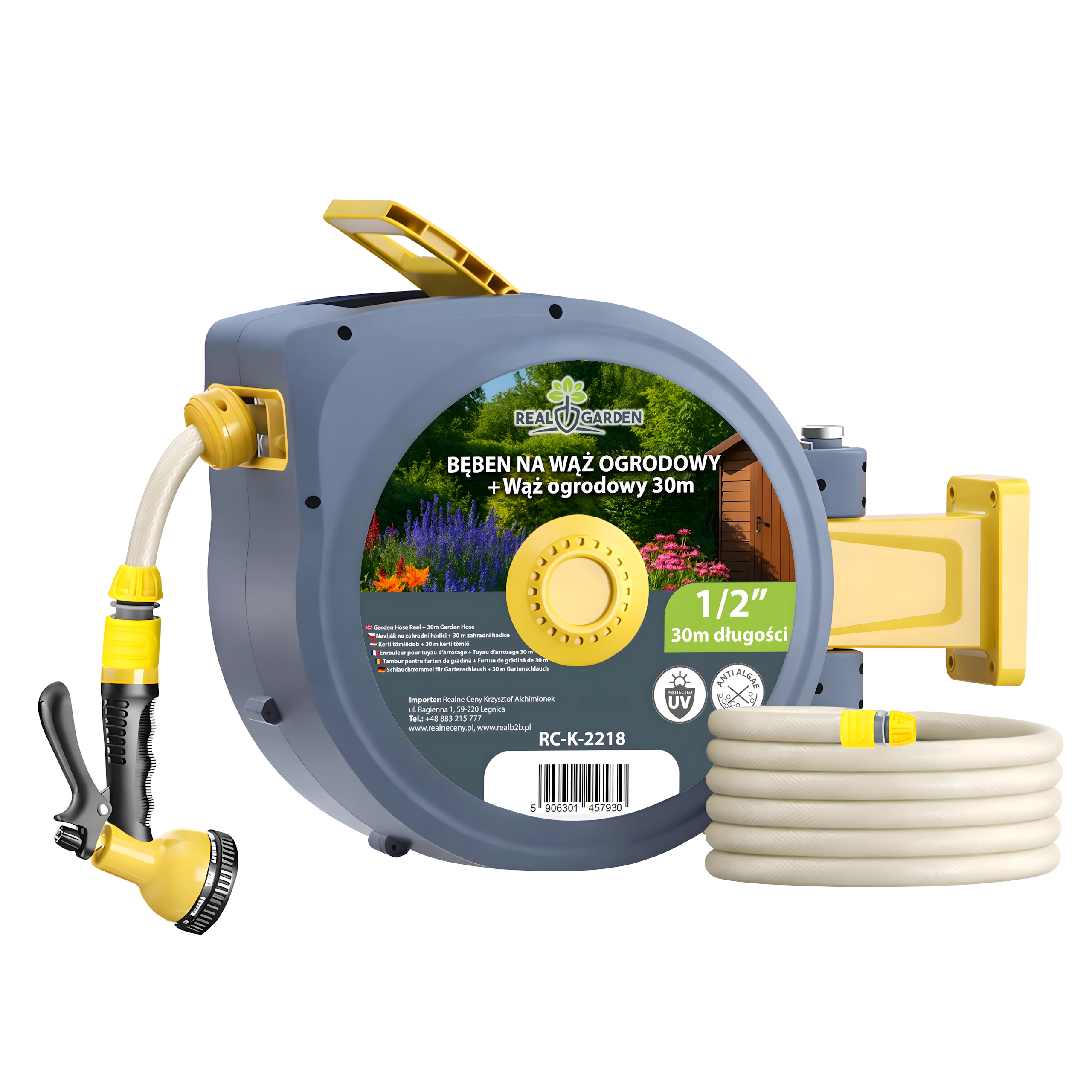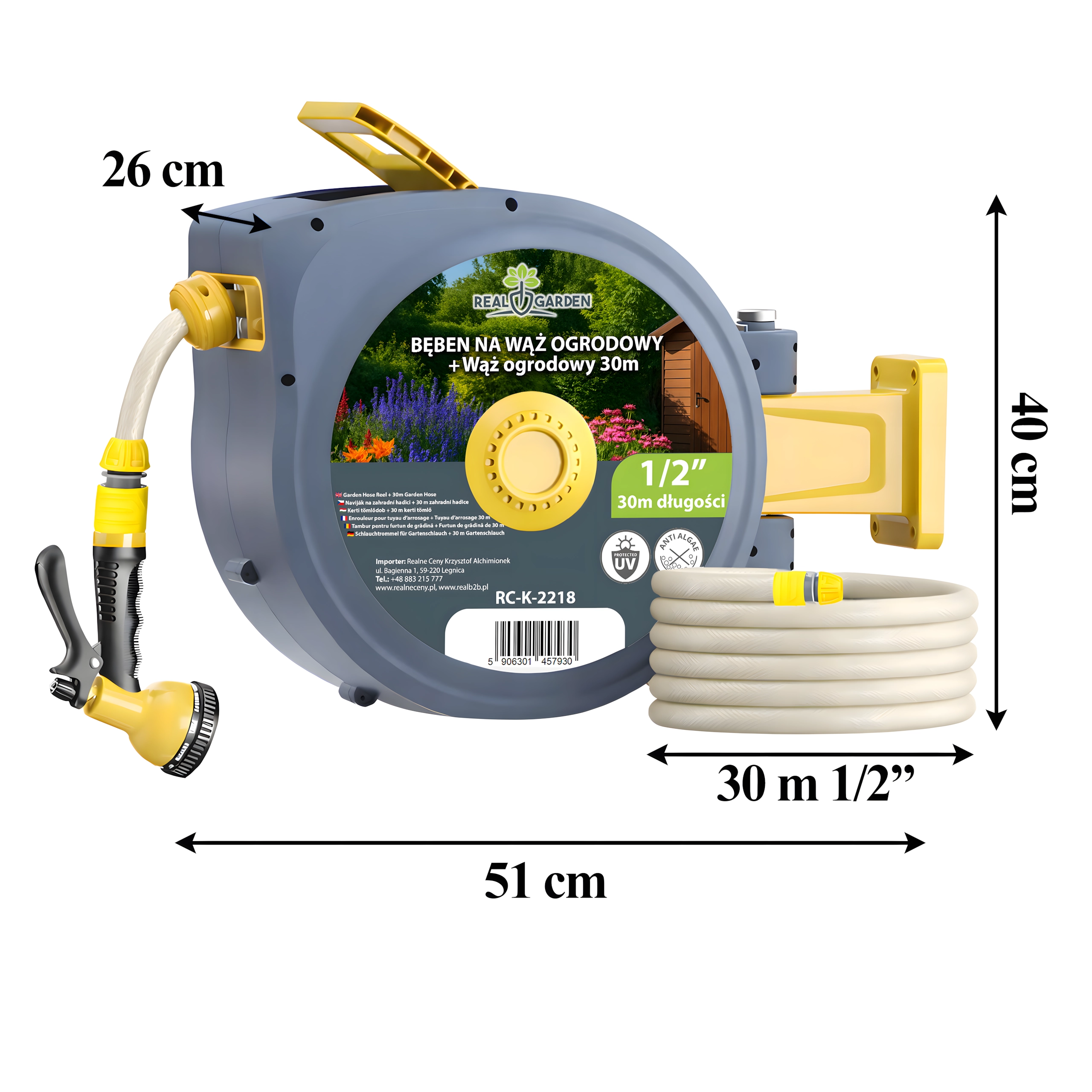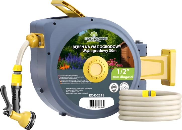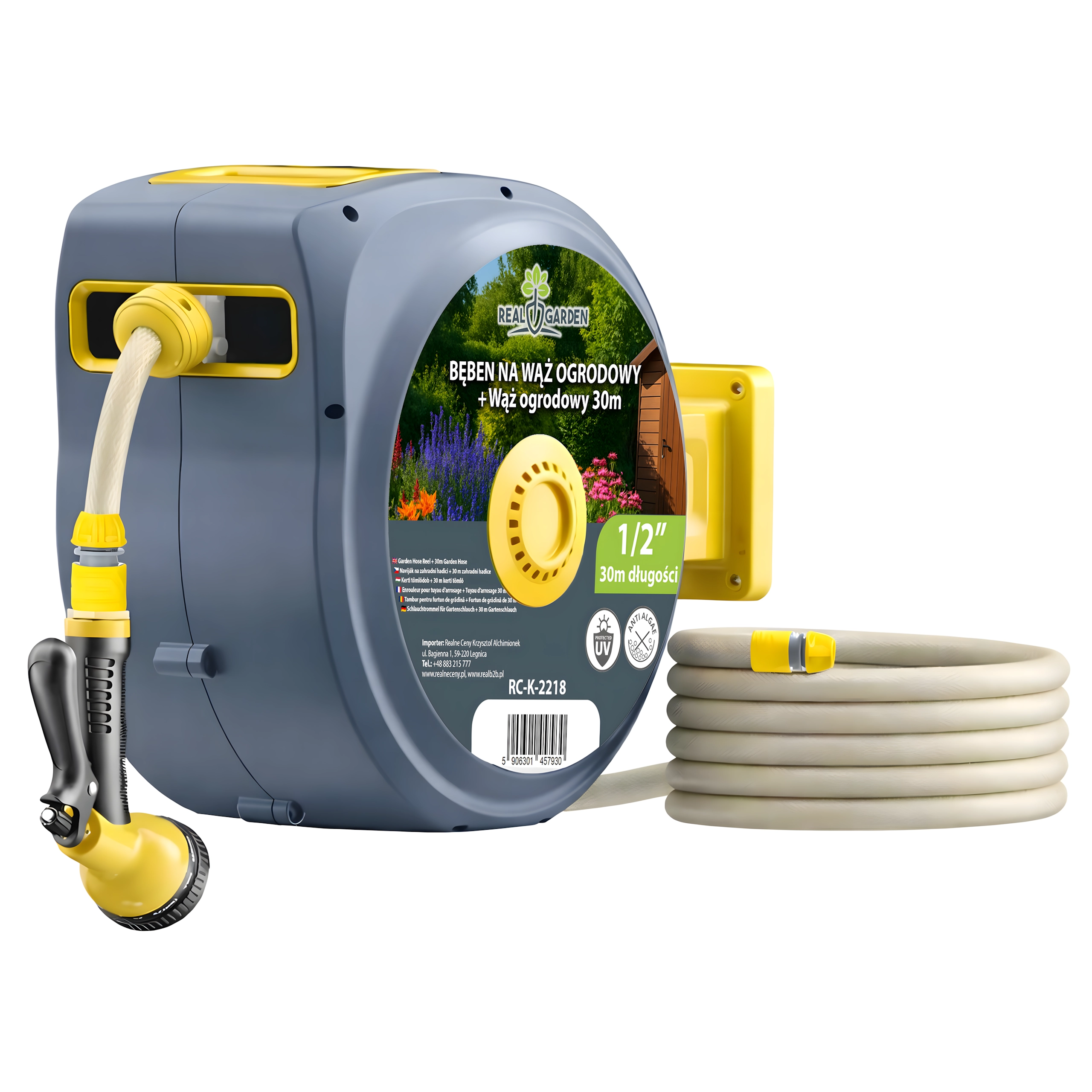 Houd je tuin perfect opgeruimd en maak het sproeien moeiteloos met de wandgemonteerde automatische slanghaspel met een 1/2" slang van 30 m. Het compacte en duurzame ontwerp met automatische oprolfunctie bespaart tijd en ruimte, de draaibare beugel vereenvoudigt de bediening en de multifunctionele sproeier zorgt voor de juiste waterstraal voor elke taak.