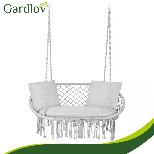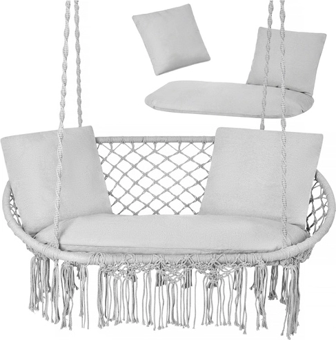 Geniet van maximaal comfort op je schommelstoel van het type ‘ooievaarsnest’ met de GARDLOV kussens voor twee personen. De set bevat een grote zitting en twee zachte rugkussens die zorgen voor uitzonderlijk comfort, stabiel zitten en een stijlvol grijs design dat geschikt is voor tuin, terras en balkon. Dankzij de wasbare hoezen (30 °C) en de slijtvaste mix van polyester en katoen zijn de kussens ideaal voor dagelijks relaxen, thuis en buiten.