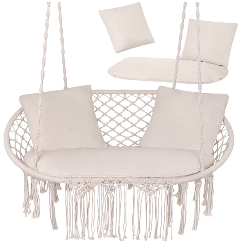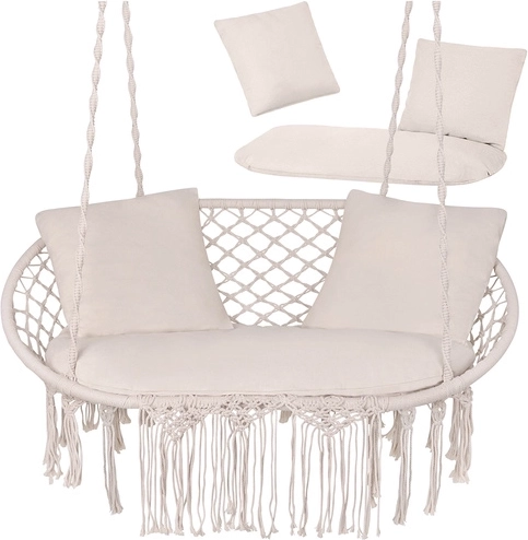 Verander je hangstoel in een echte oase van ontspanning. De tweedelige zitting en twee vierkante kussens vullen de zitruimte en zorgen voor stabiliteit en zacht comfort tijdens het relaxen met z’n tweeën. Het universele design en de slijtvaste materialen zijn ideaal voor tuin, terras, balkon en interieur.