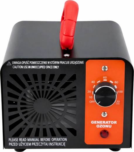 De intuïtieve mechanische timer laat je de ozonbehandeling instellen van 1 tot 120 minuten, afhankelijk van de kamergrootte en de mate van vervuiling. De ingebouwde ventilator zorgt voor een gelijkmatige verspreiding van ozon, wat de efficiëntie verhoogt. De robuuste metalen constructie, de stabiele vier pootjes en de praktische handgreep maken dagelijks gebruik en transport eenvoudig.