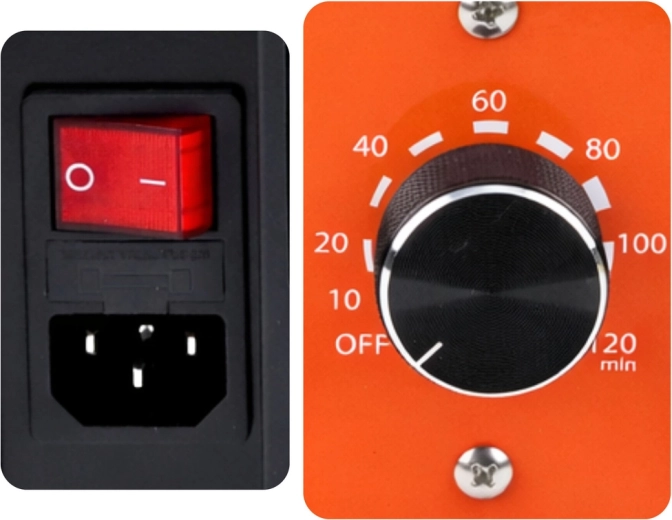 - Timer 1–120 min voor nauwkeurige cyclusinstelling