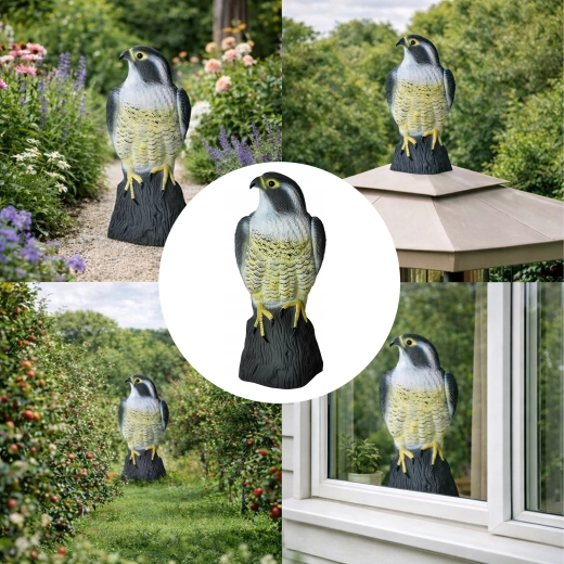 De realistische valksimulator verjaagt effectief duiven, spreeuwen en kleine vogels van balkons, tuinen, boomgaarden en terrassen. Dankzij de natuurlijke kleuring en gedetailleerde afwerking oogt hij dreigend en levensecht, waardoor vogels worden ontmoedigd om te landen en schade aan te richten. Gemaakt van duurzaam, weerbestendig plastic, met een stabiele basis en eenvoudig te plaatsen zonder gereedschap. Ideaal als ecologische en stille bescherming zonder chemicaliën.